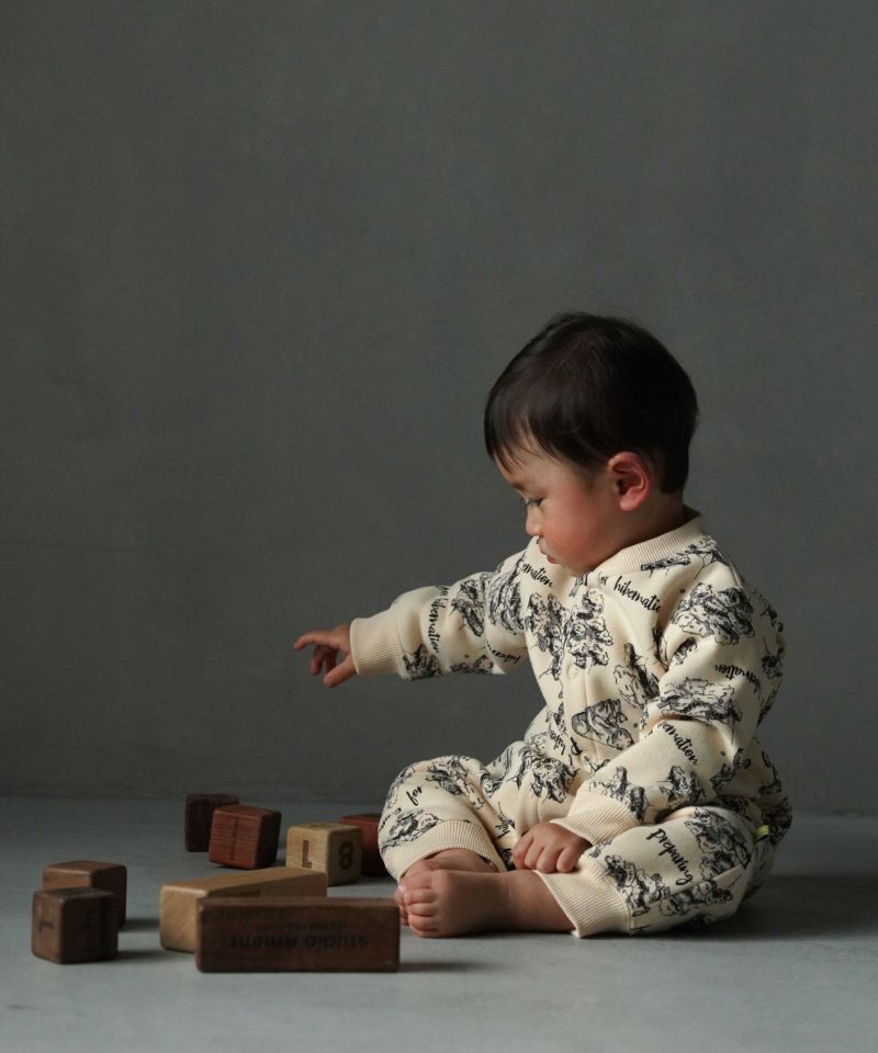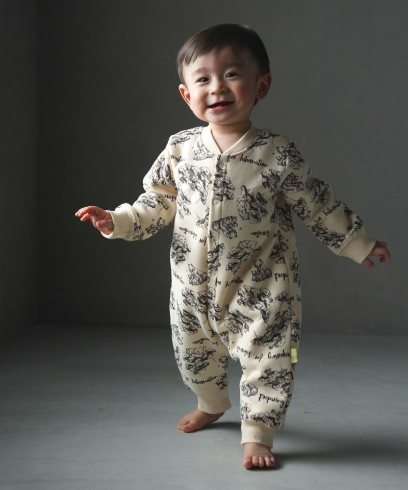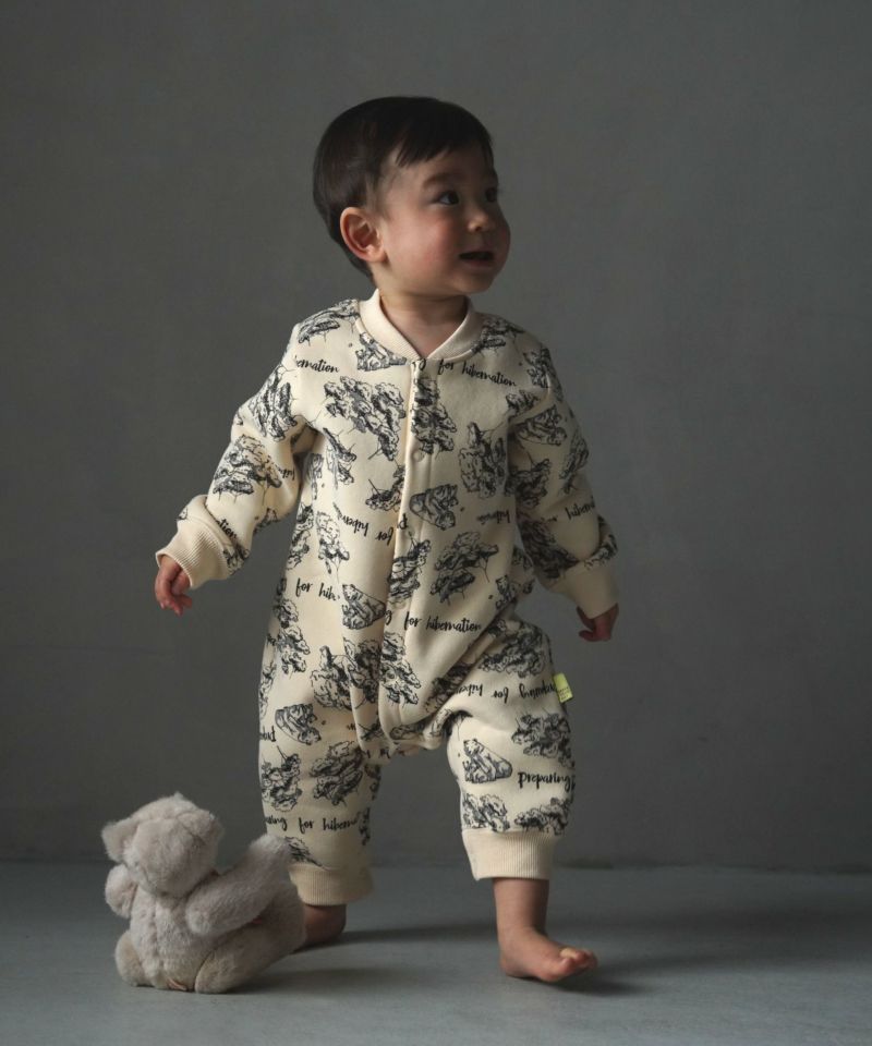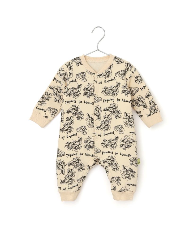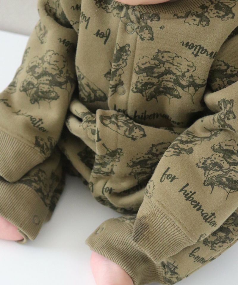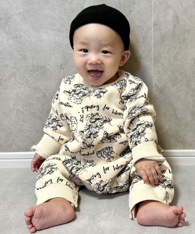 【セール】森のくまさん総柄前開き裏起毛カバーオール