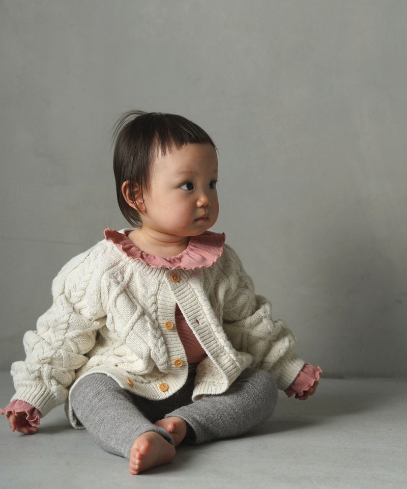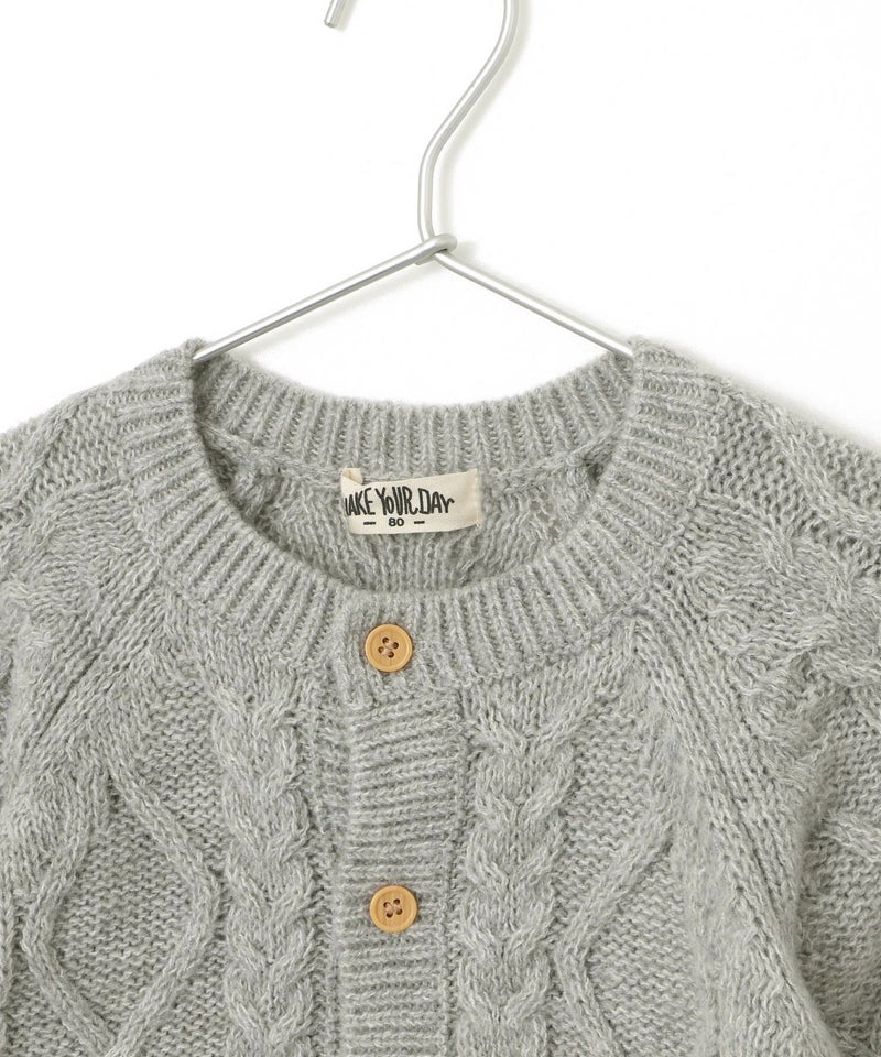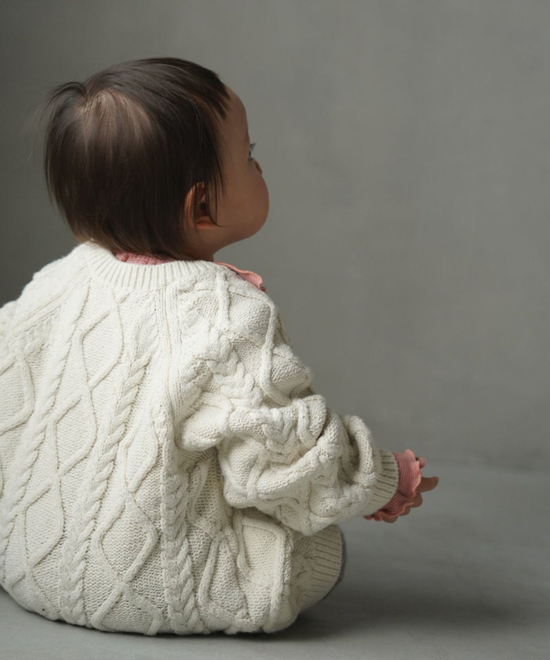 高級感漂うケーブル編みのベビーカーディガン。