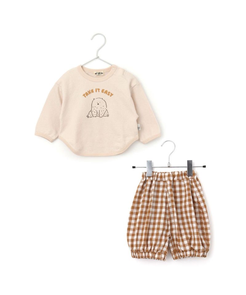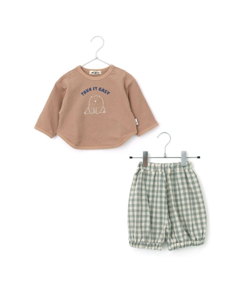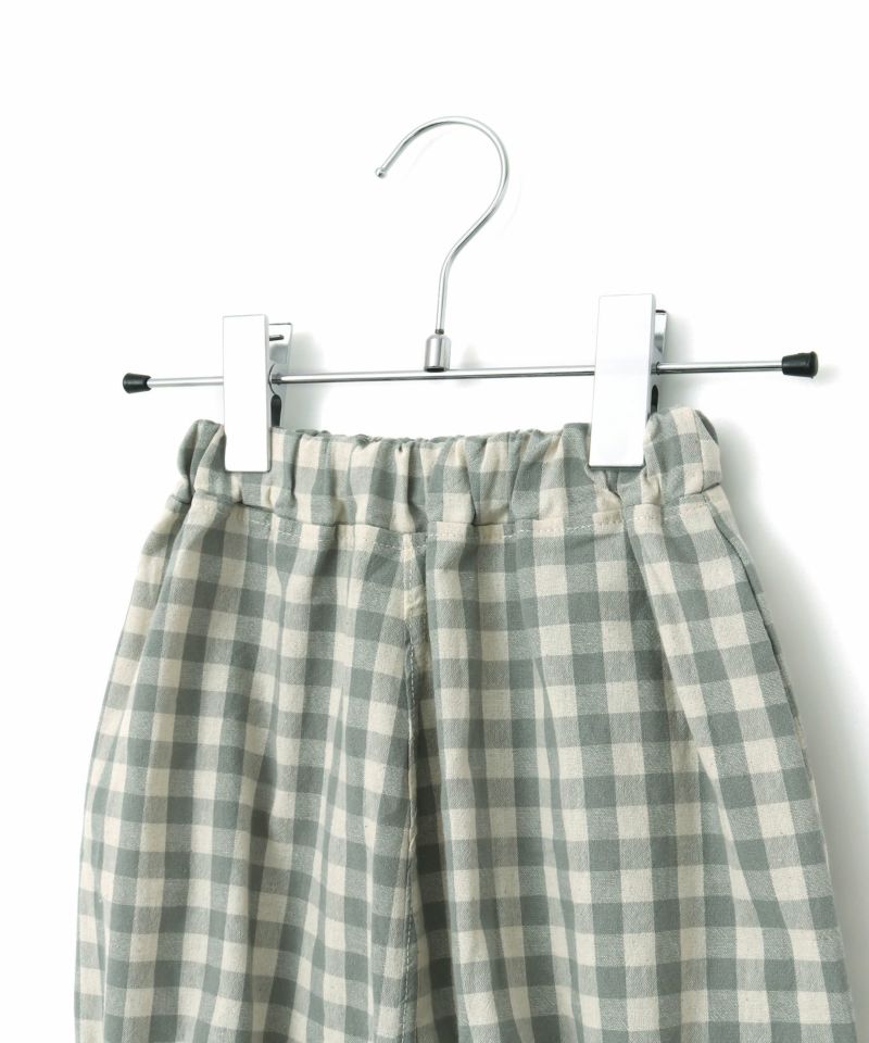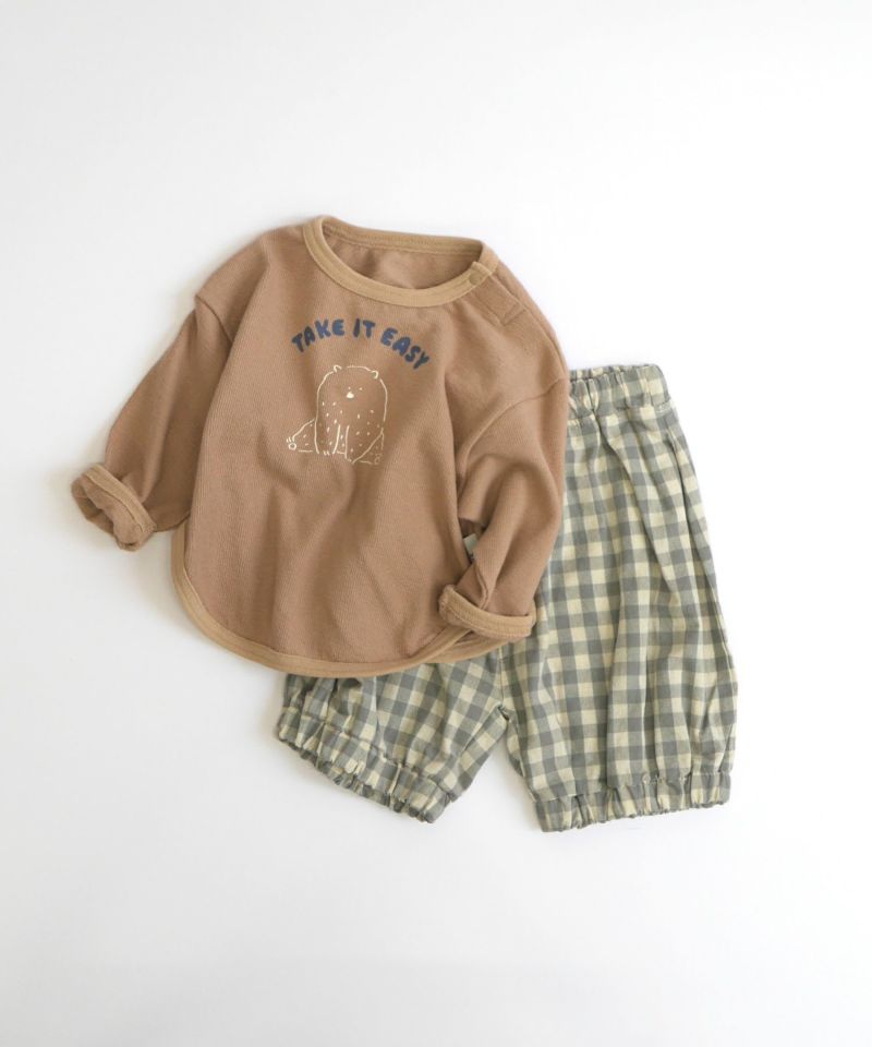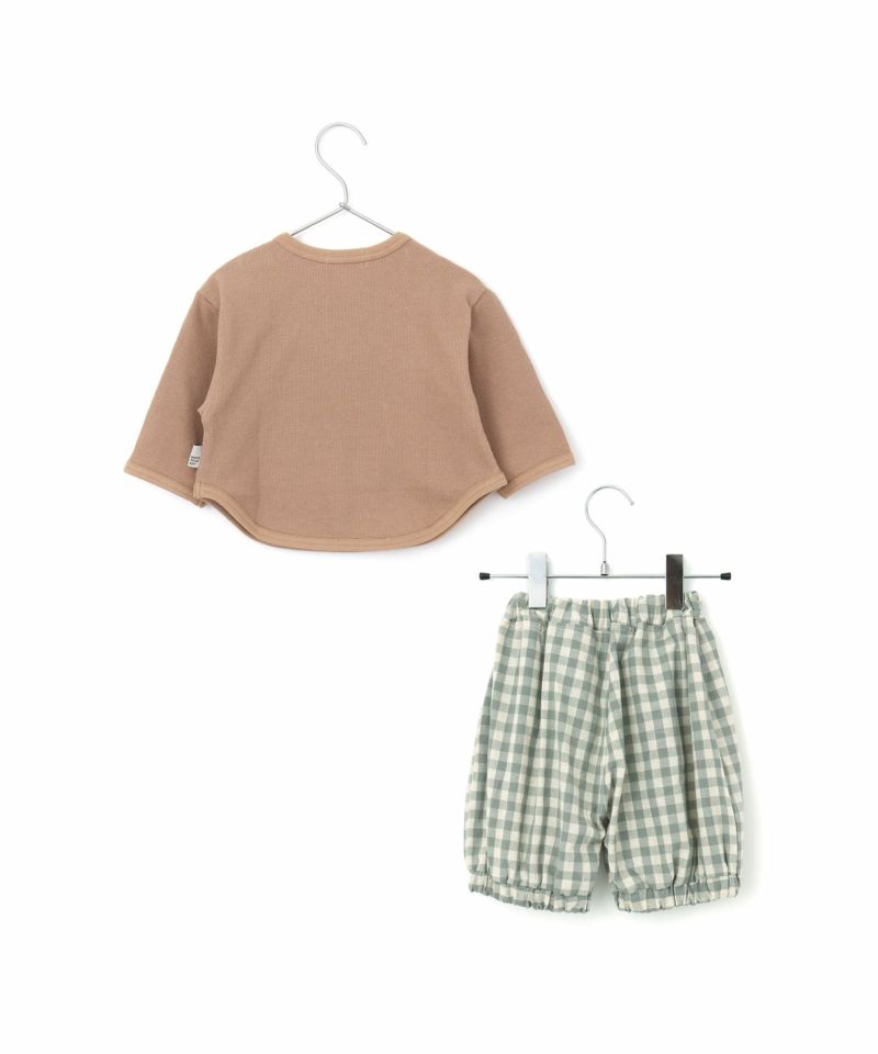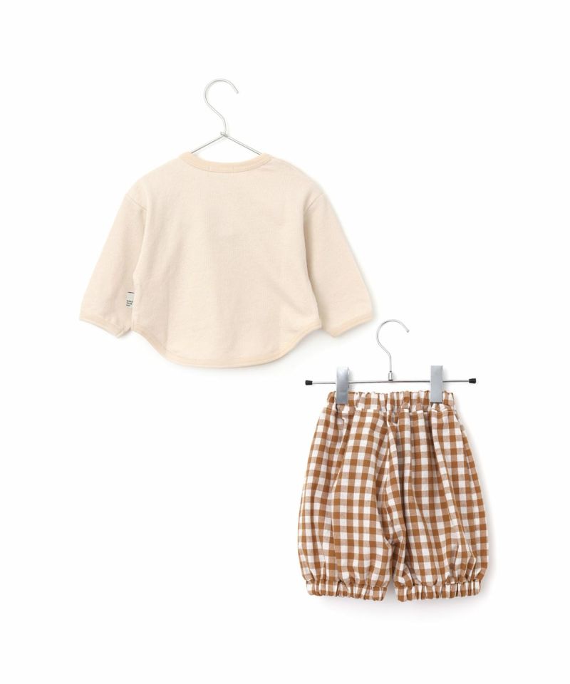 甘撚りのやわらかいカットソーのトップスと、まるっこいシルエットのギンガムチェックのボトムスのセットです◎