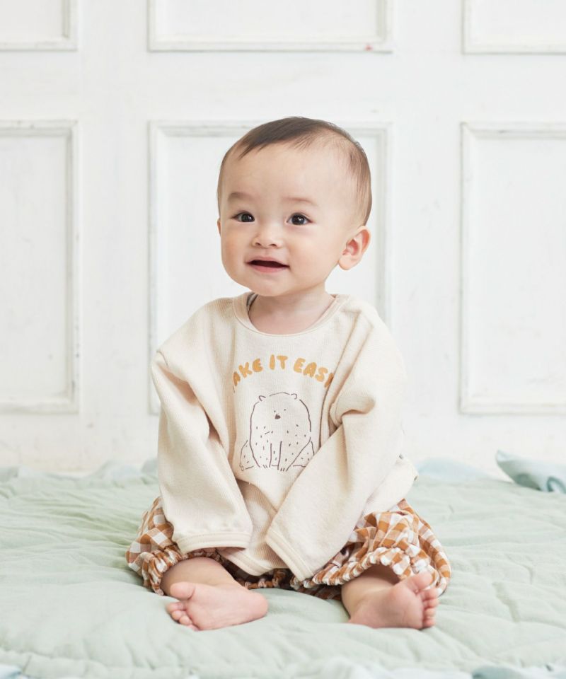 ゆるゆるのくまさんイラストのベビーセットアップ。