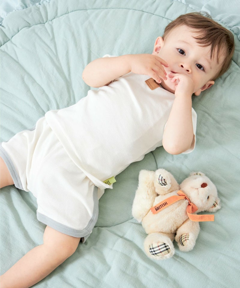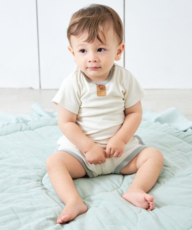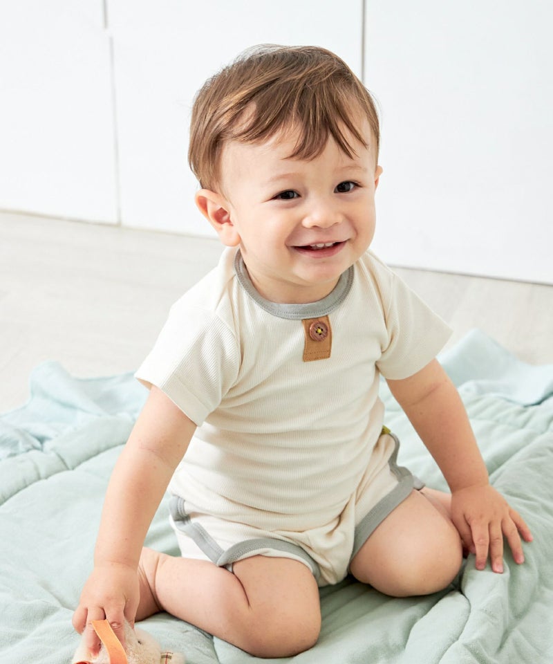 伸縮性の強いリブ素材と無地のくすみカラーで毎日のコーデに使いやすいベビーの無地リブシリーズ。