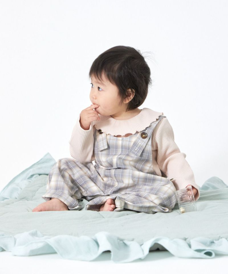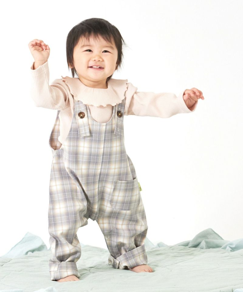 まるっこいシルエットがベビーのかわいらしさを引き立てるオーバーオール。
