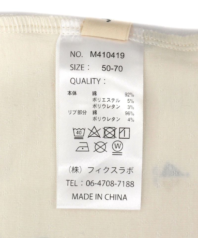 本体)綿92% ポリエステル5% ポリウレタン3% 衿ぐり・前端・裾)綿96% ポリウレタン4%