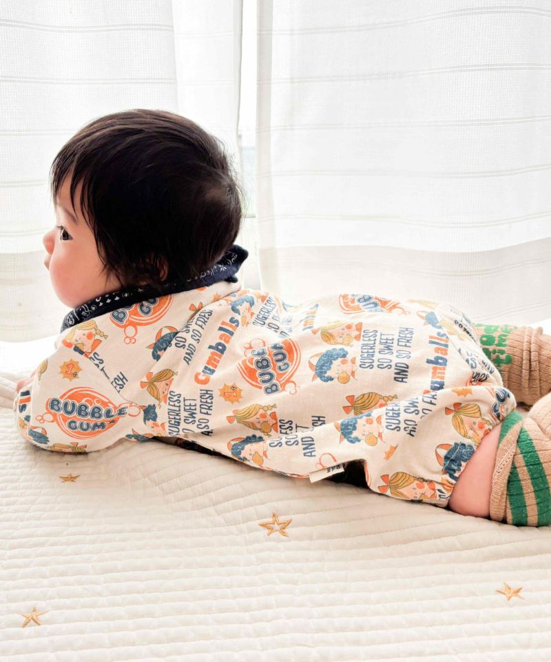 ポップでちょっとレトロなタッチがかわいいバブルガム柄。