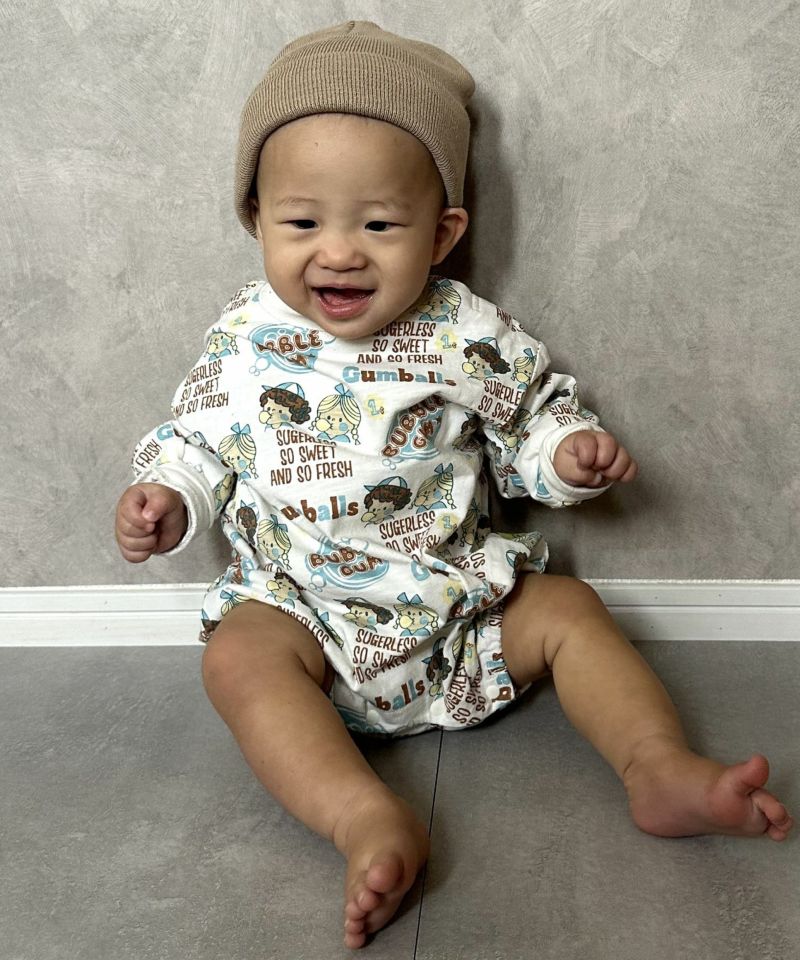 コットン100% で少し凹凸感のあるスラブ素材を使用した、ヘビロテ間違いナシの褒められロンパースです◎