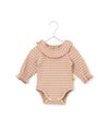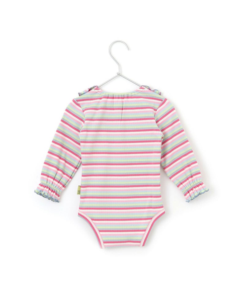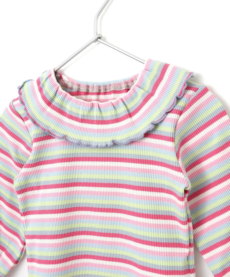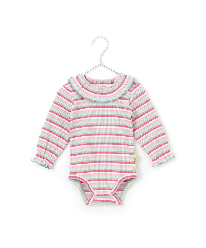無地とボーダー襟付きリブロンパース