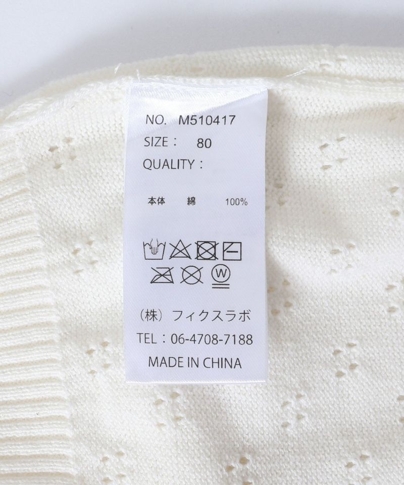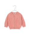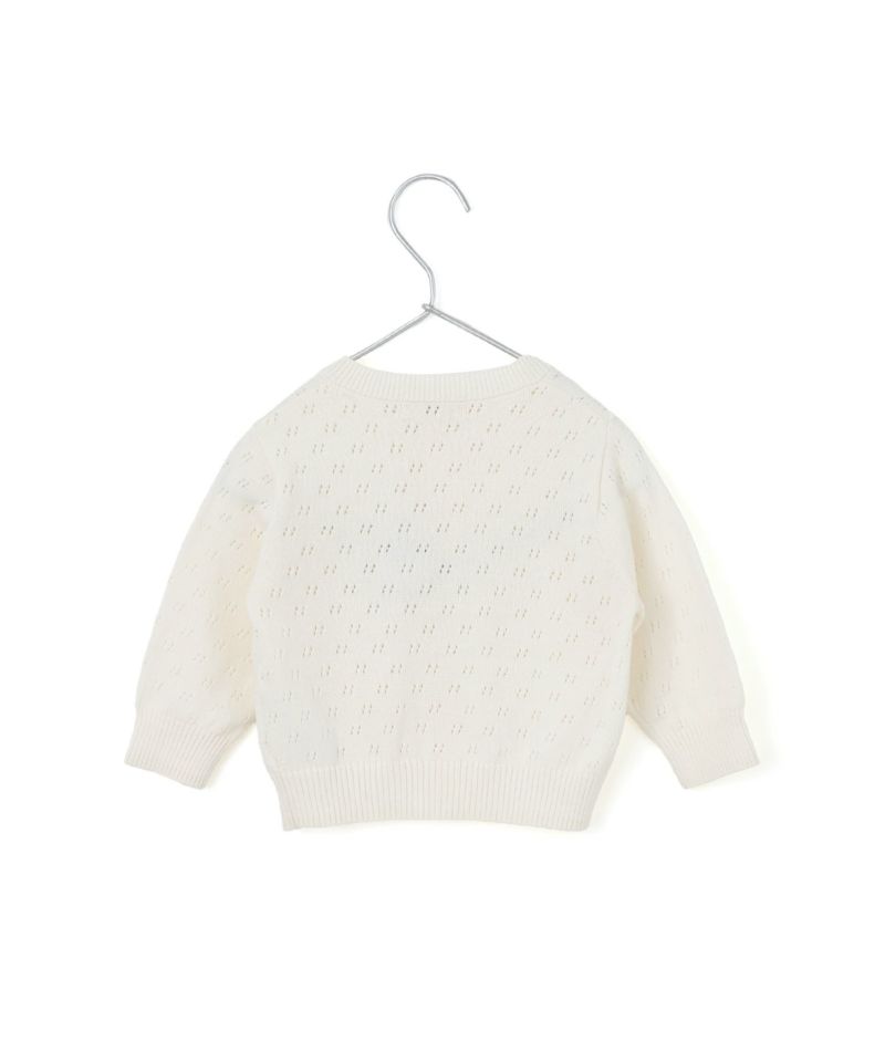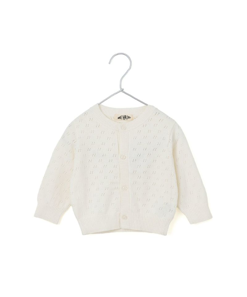 透かし編み模様が入ったやさしい肌触りのベビーニットカーデ。