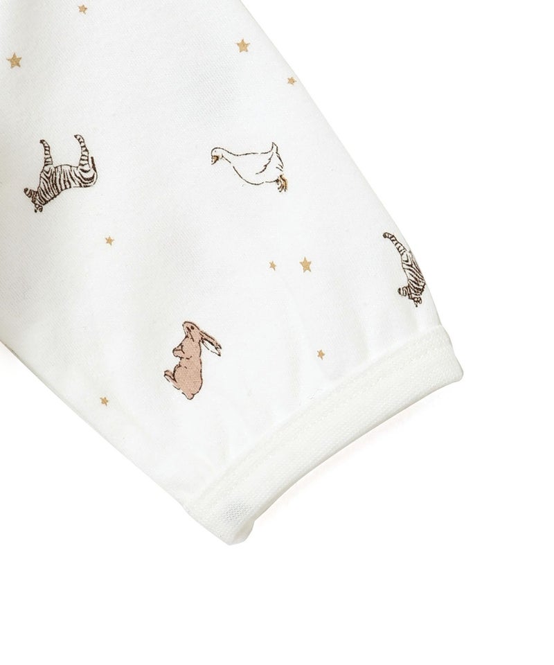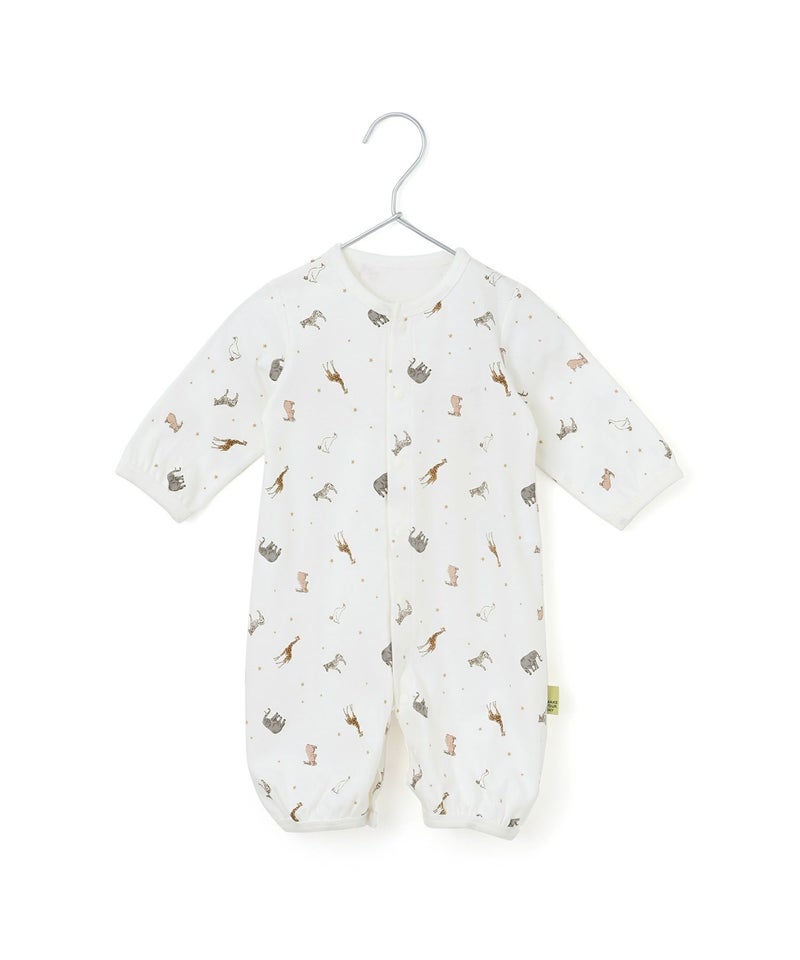 おそろいの柄で2WAYオール、コンビ肌着、スタイ、ビーニーのラインナップ。
