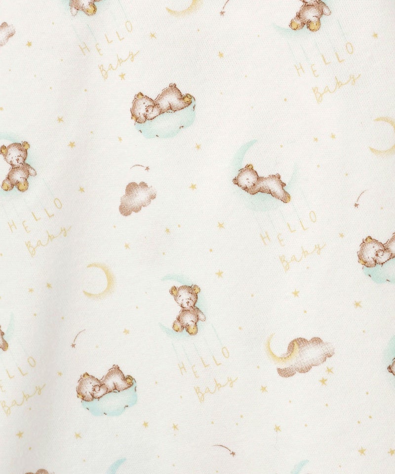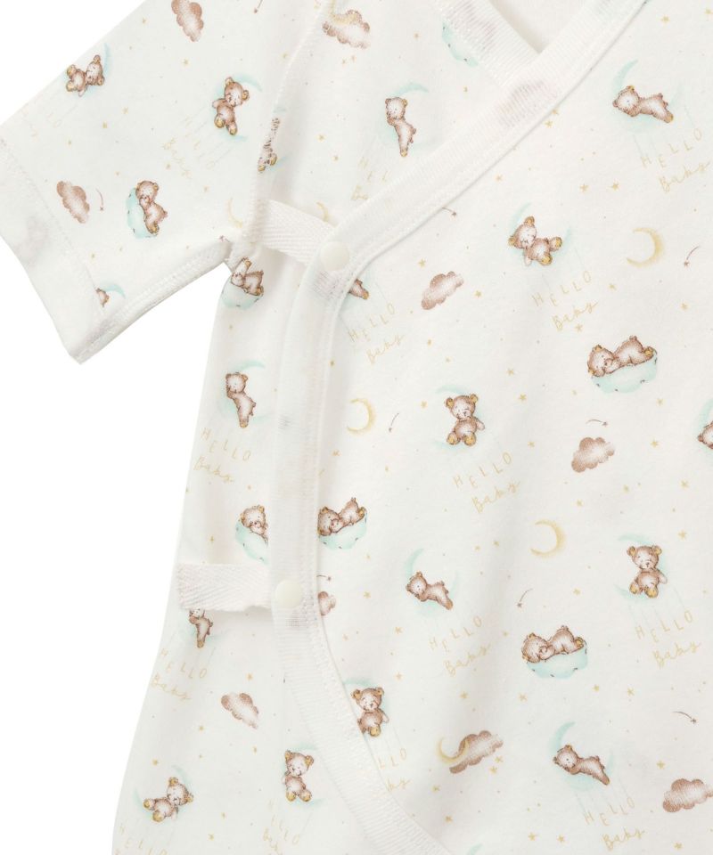 おそろいの柄で2WAYオール、コンビ肌着、スタイ、ビーニーのラインナップ。