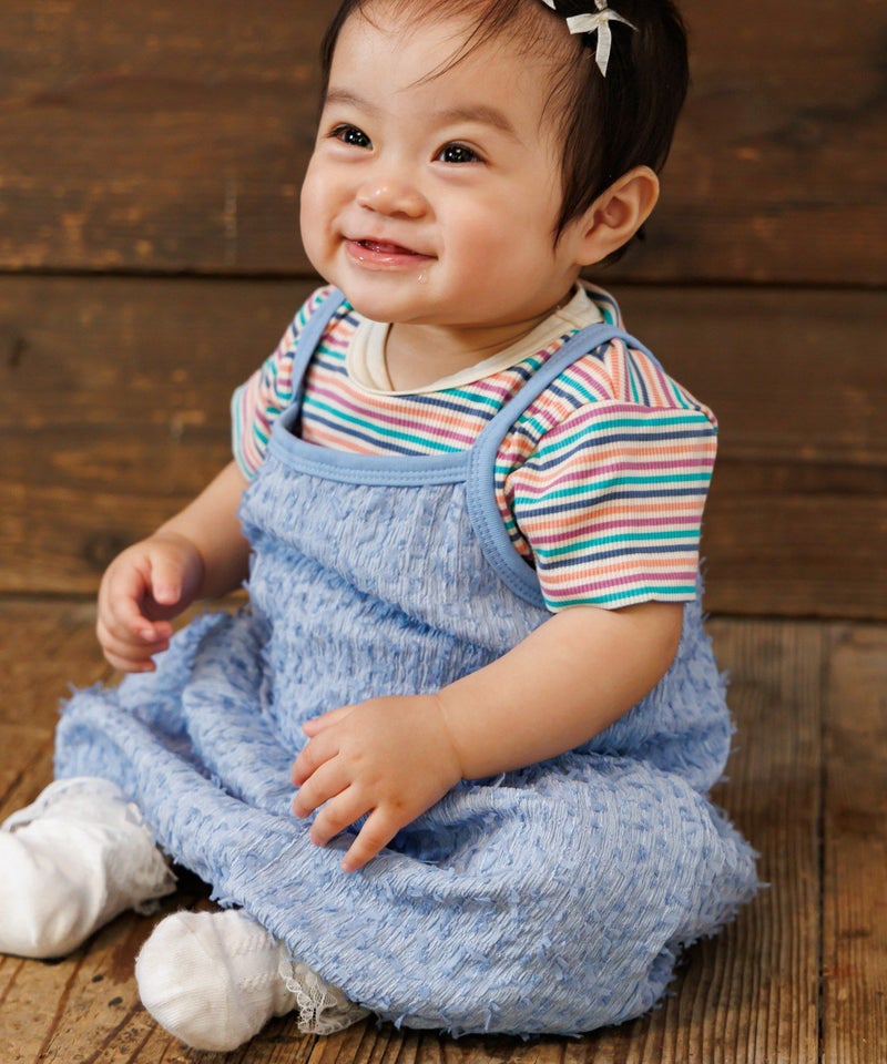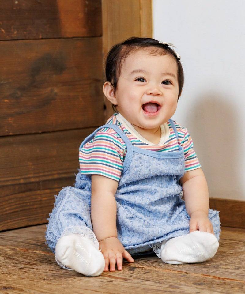 伸縮性の強い素材で着せやすく動きやすい、ベビーにぴったりのアイテムです。