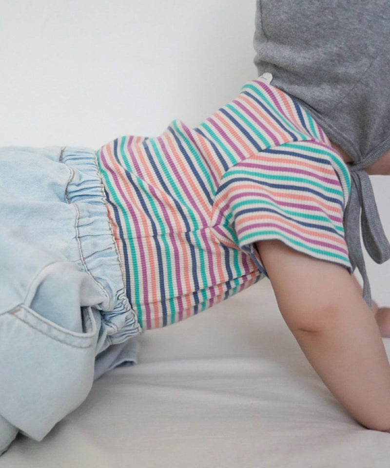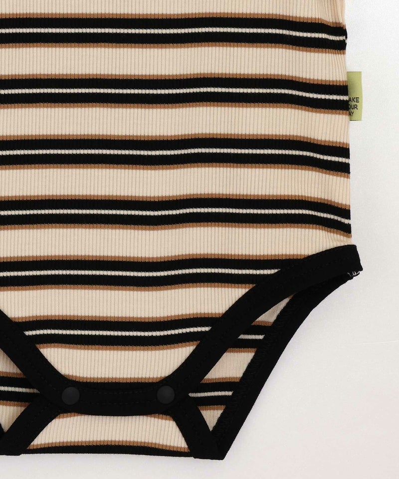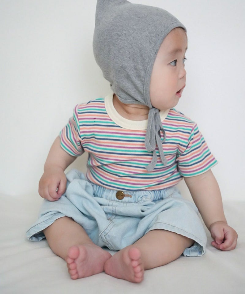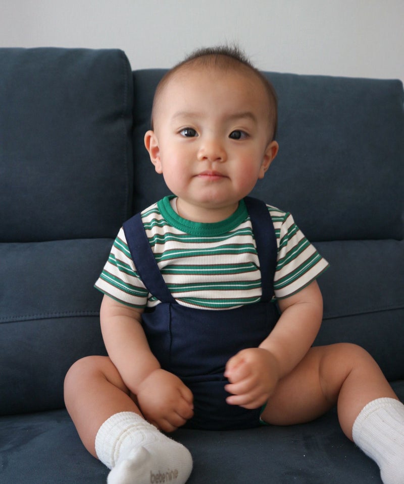 1枚で着ても、ベビーオールやブルマと合わせても、コーデのベースになるテレコボーダーロンパス。