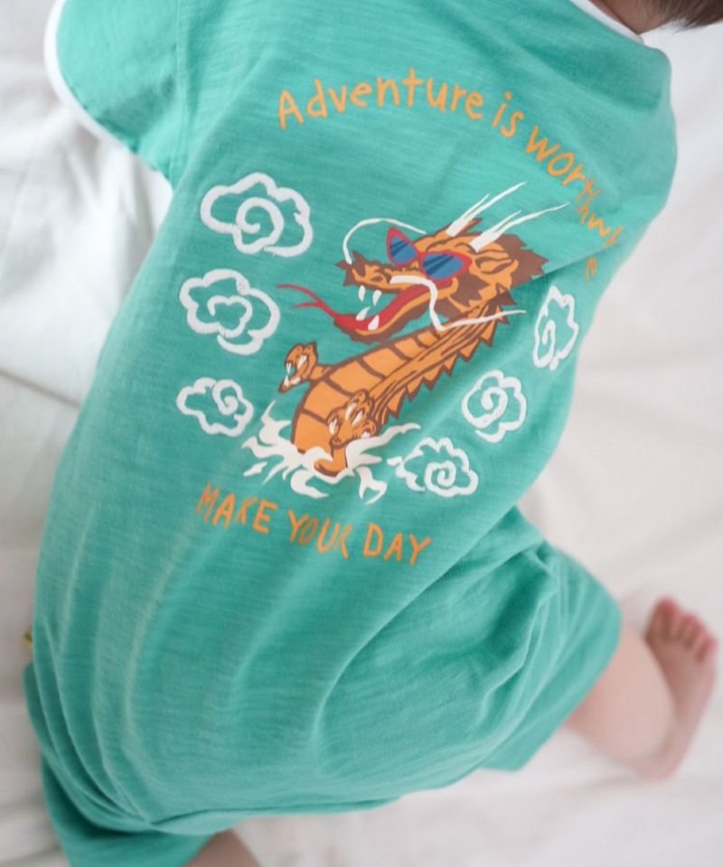 サングラスかけちゃう。雲と一緒に踊っちゃう。そんなファンキーなドラゴンさんを背中に描いたスカジャン風ロンパス。