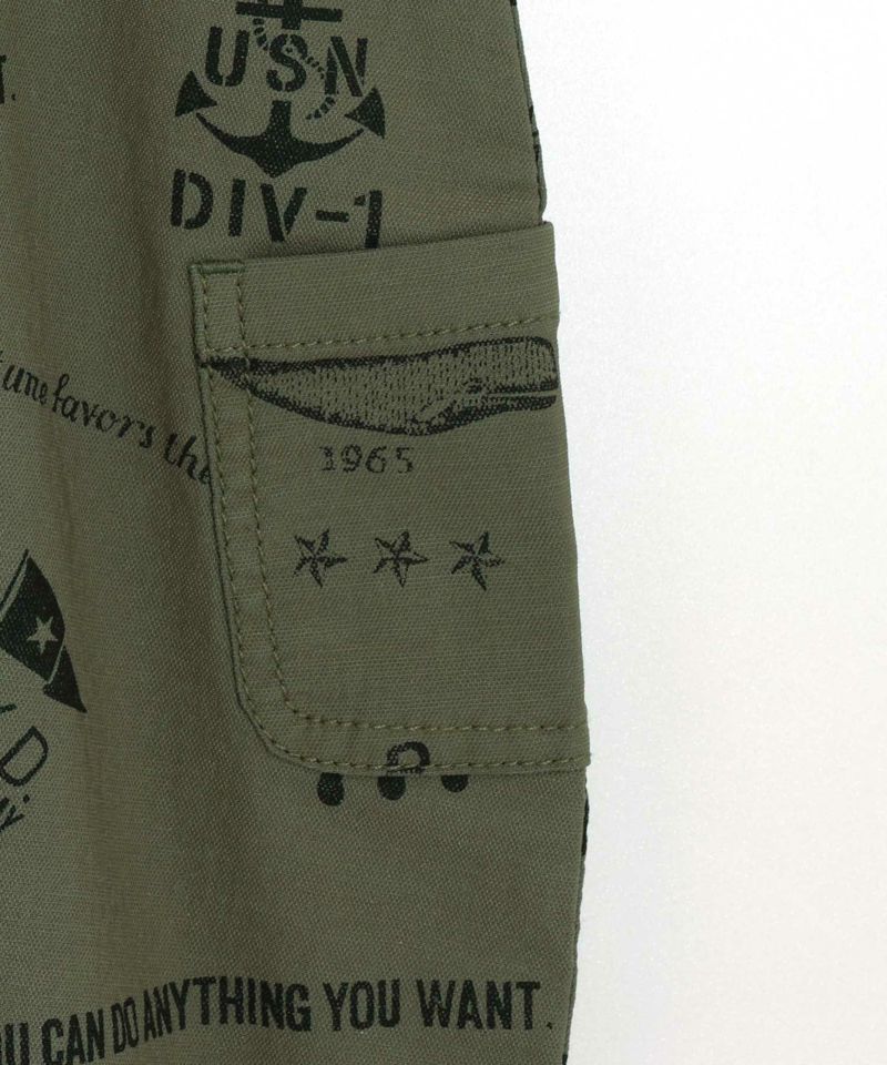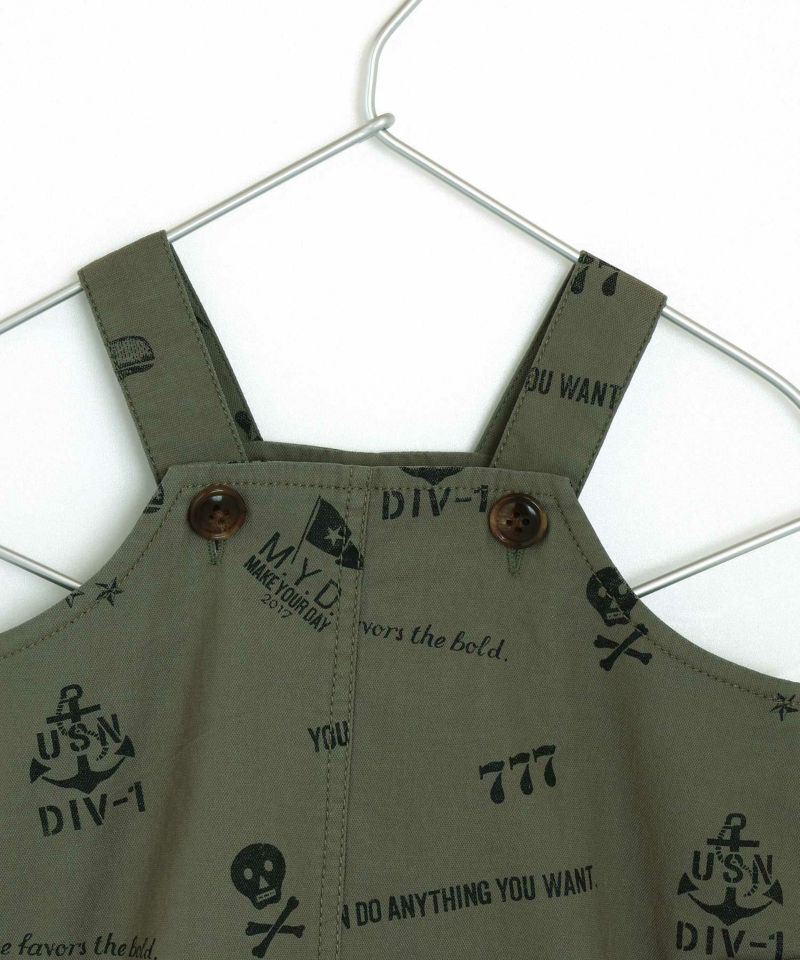 ぽわんとしたシルエットがかわいいショートオールをかっこいいミリタリー柄で。