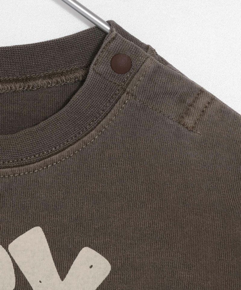 製品染めを施して古着感を醸し出すコットン100%の素材に、ポップなロゴがインパクトあるデザインです。
