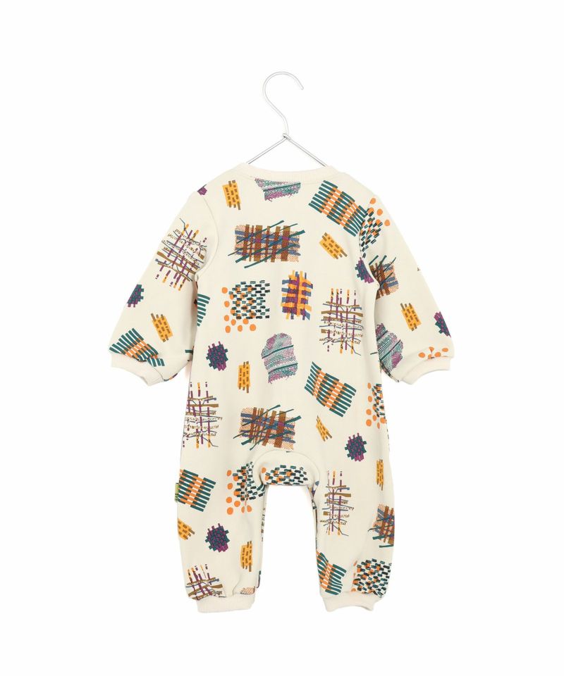 パッチワークを貼り合わせたような個性的な柄のカバーオール。