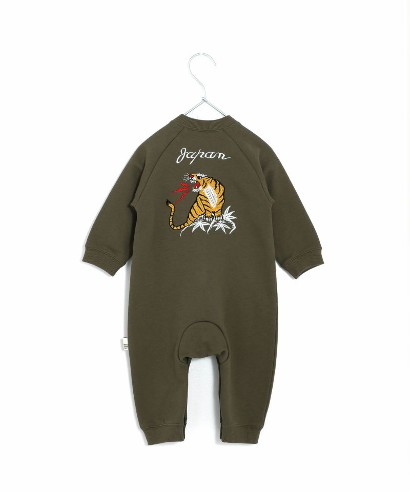 スカジャンのようなラグランスリーブで、トラさんの刺繍がとんでもなくかっこいいロンパスに仕上がりました。