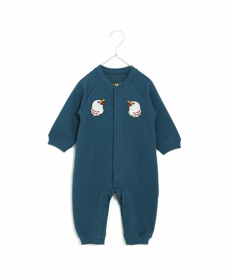 イーグル刺繍ファミリー長袖前開きカバーオール
