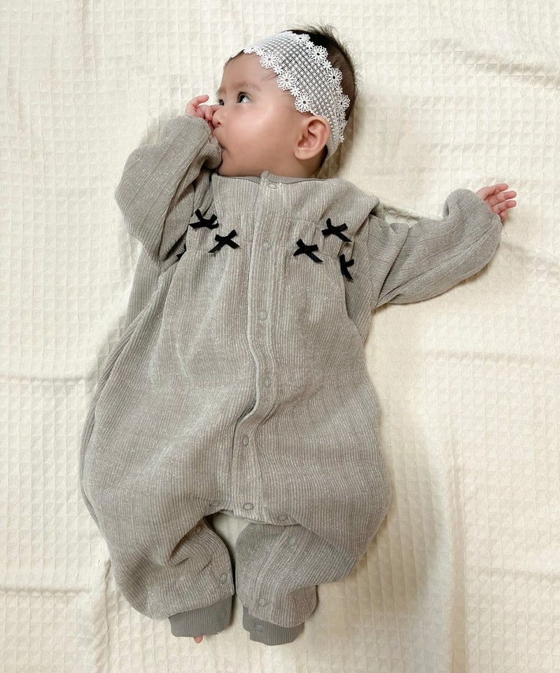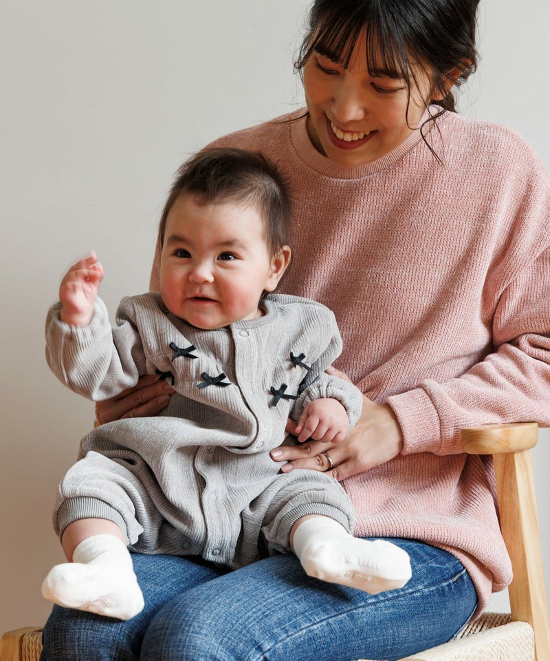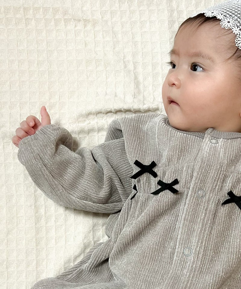【セール】ラメニット風長袖前開きカバーオール