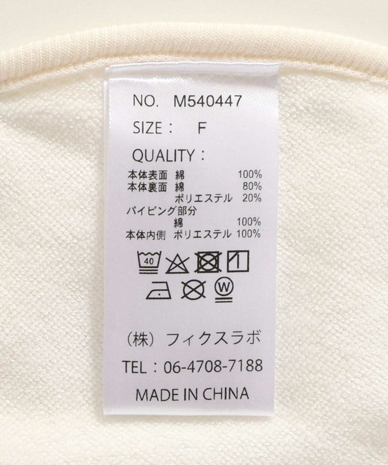 本体表面)綿100% 本体裏綿)綿80% ポリエステル20% パイピング部分)綿100% 本体内側)ポリエステル100%