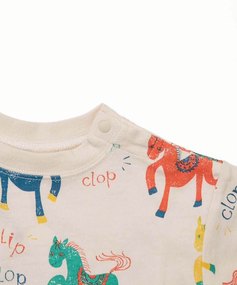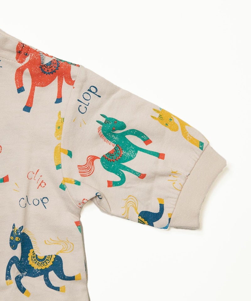 2026年はうま年なので、ちょっとポップでカラフルなポニーを総柄にしてロンパスにしました!