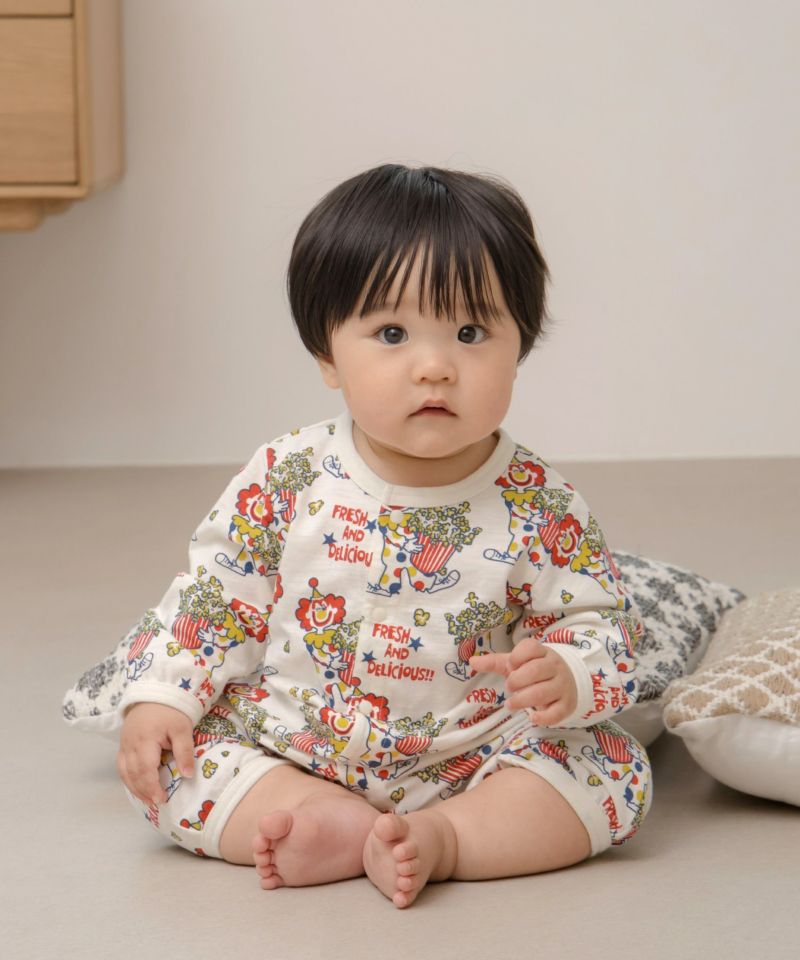 なのでピエロとポップコーンをカバーオールにしてみました。