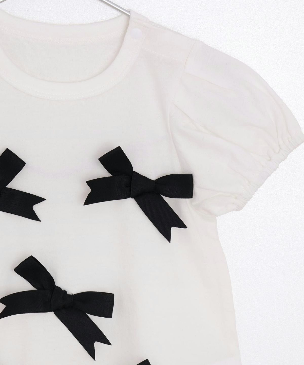 【セール】ママとおそろい リボンパフスリーブ半袖ロンパス