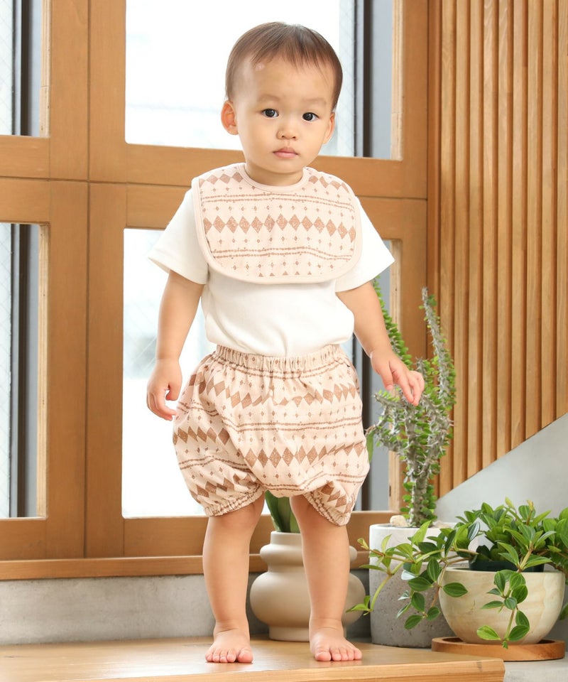 シンプルな幾何学模様で、ベビーのコーデにちょっとしたアクセントを加えられるアイテムです◎