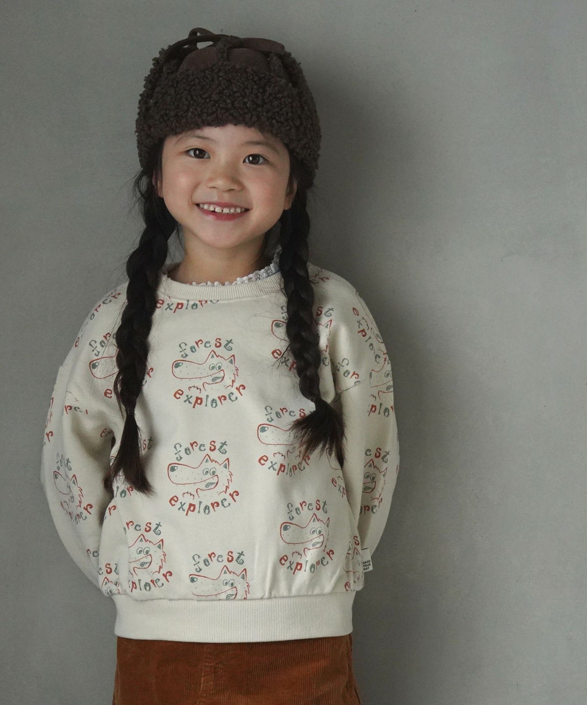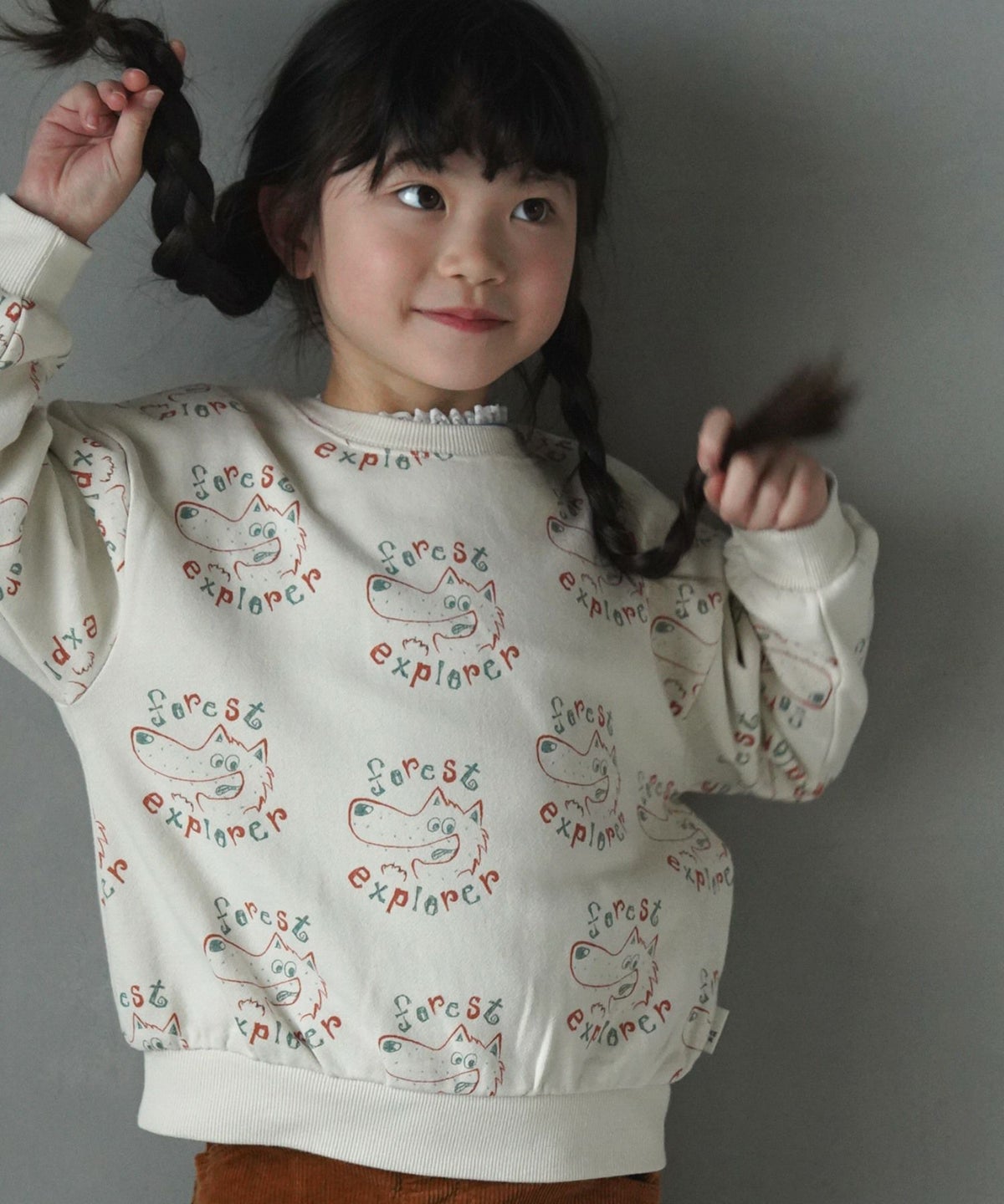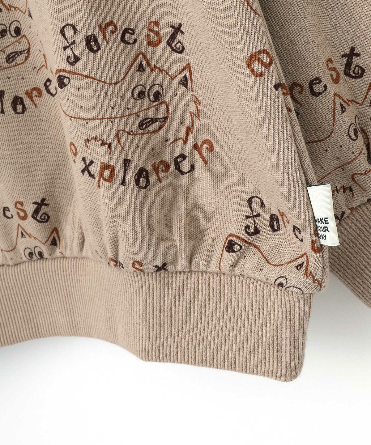 【セール】探検家オオカミの総柄裏毛トレーナー■80~140cm