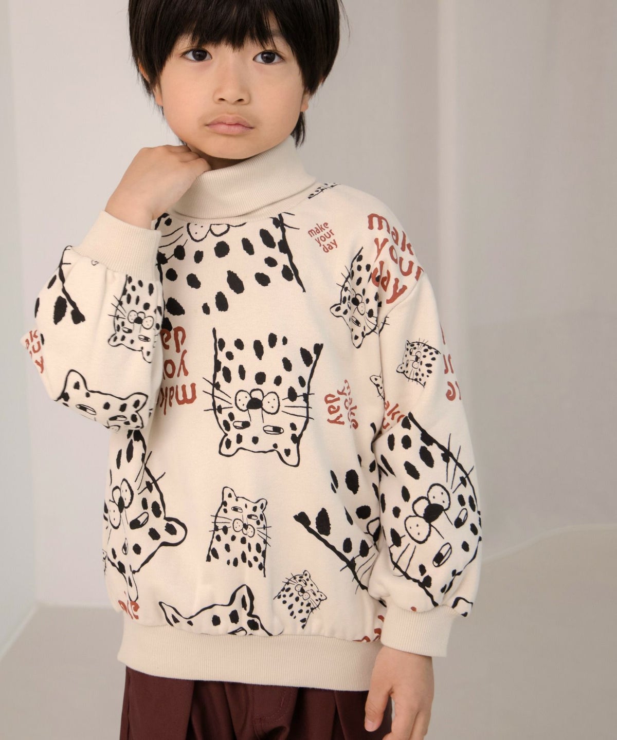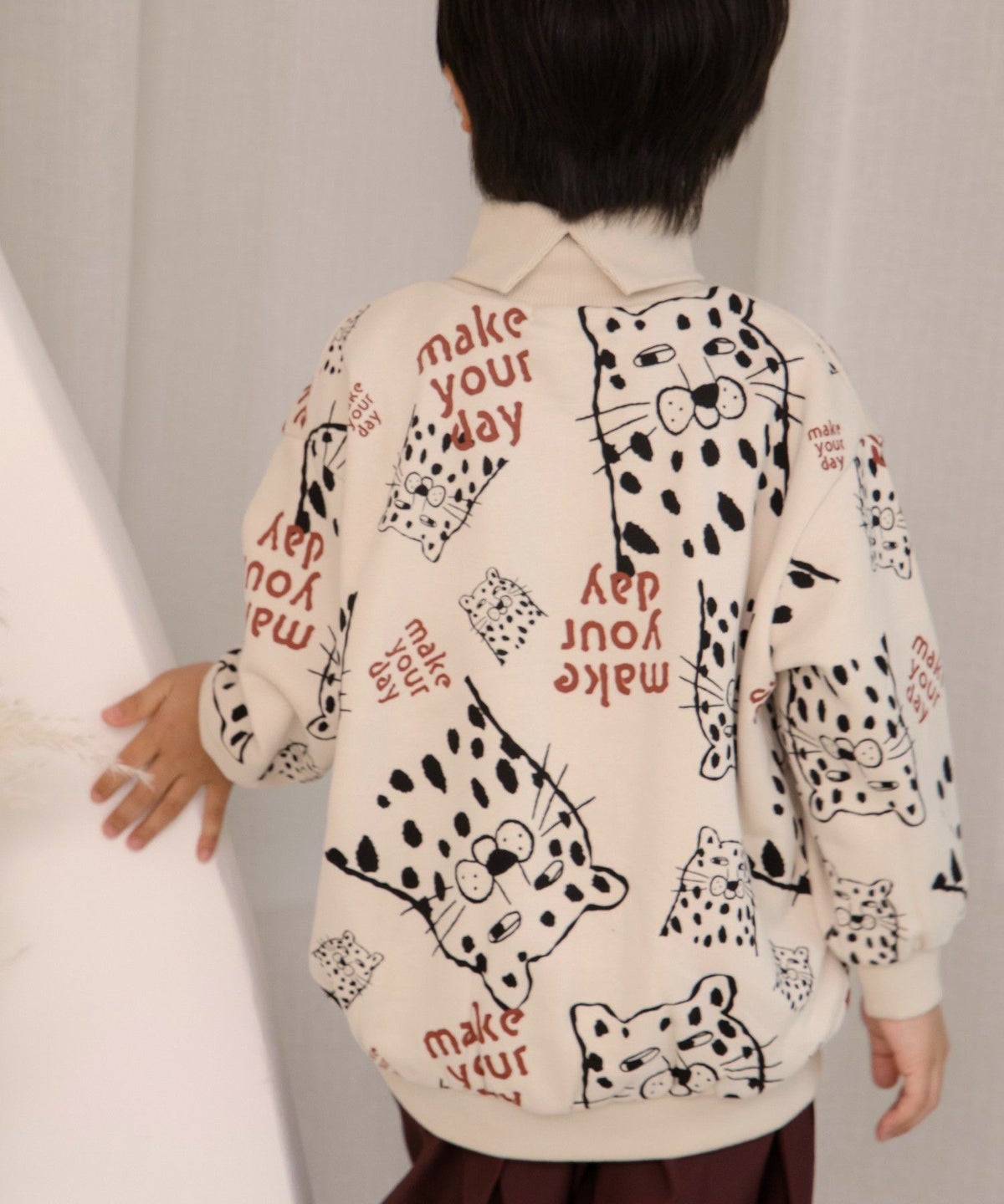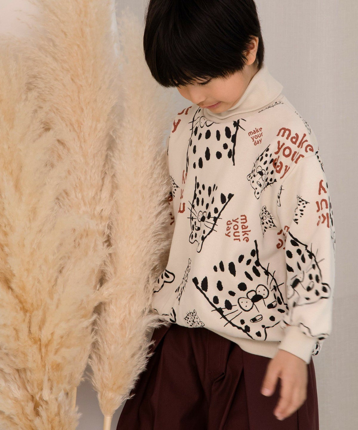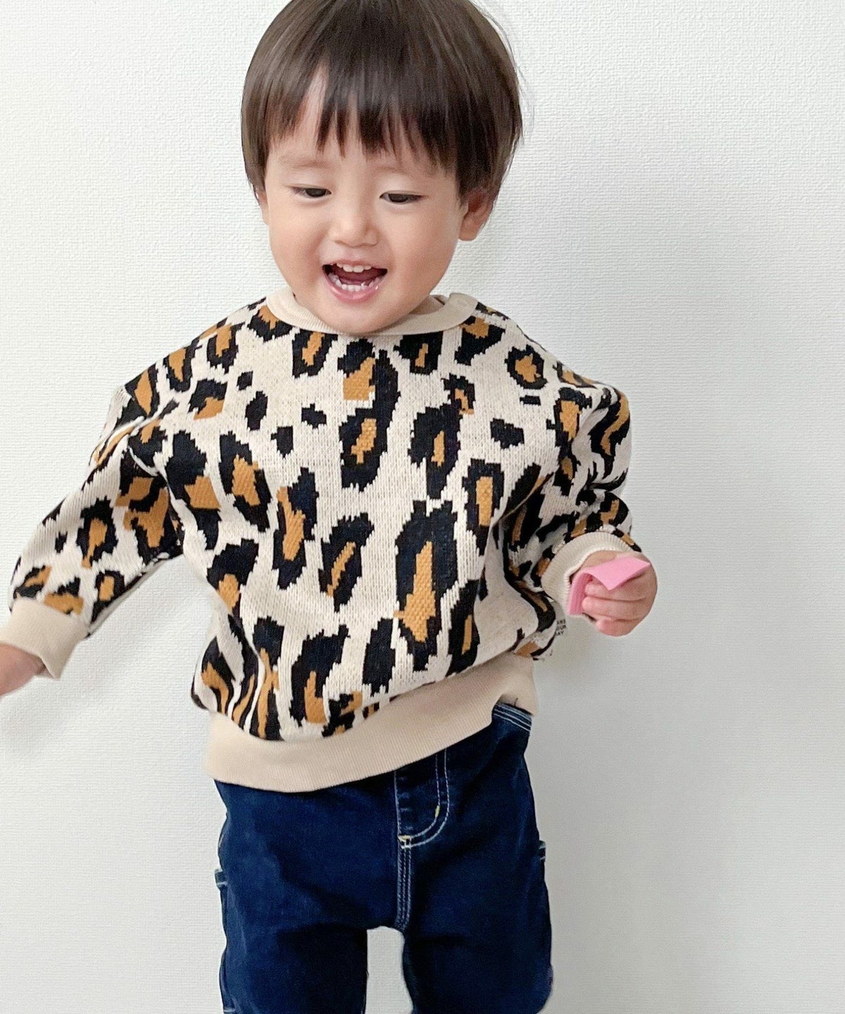 【セール】おとぼけヒョウ裏起毛総柄トレーナー■80~140cm