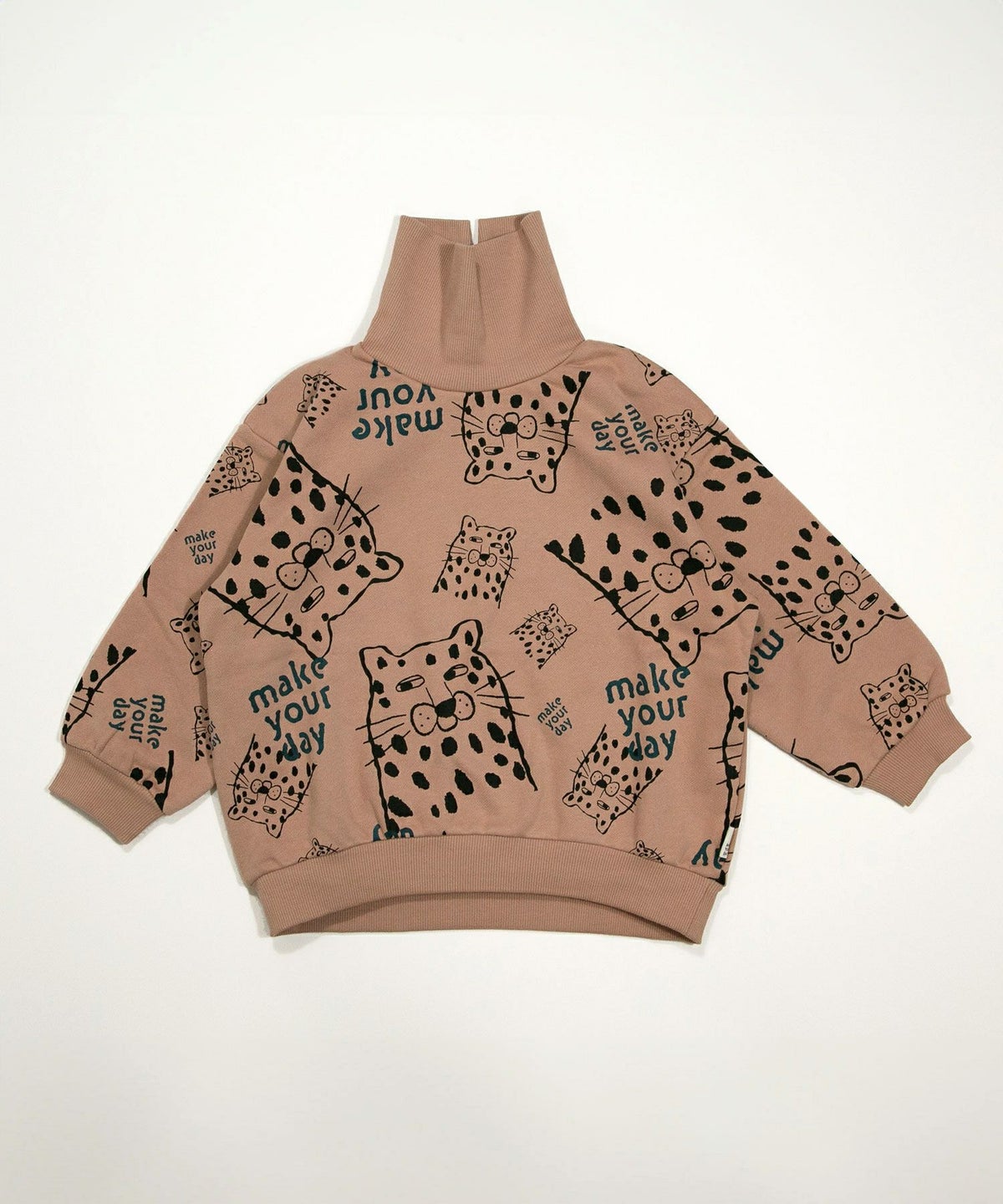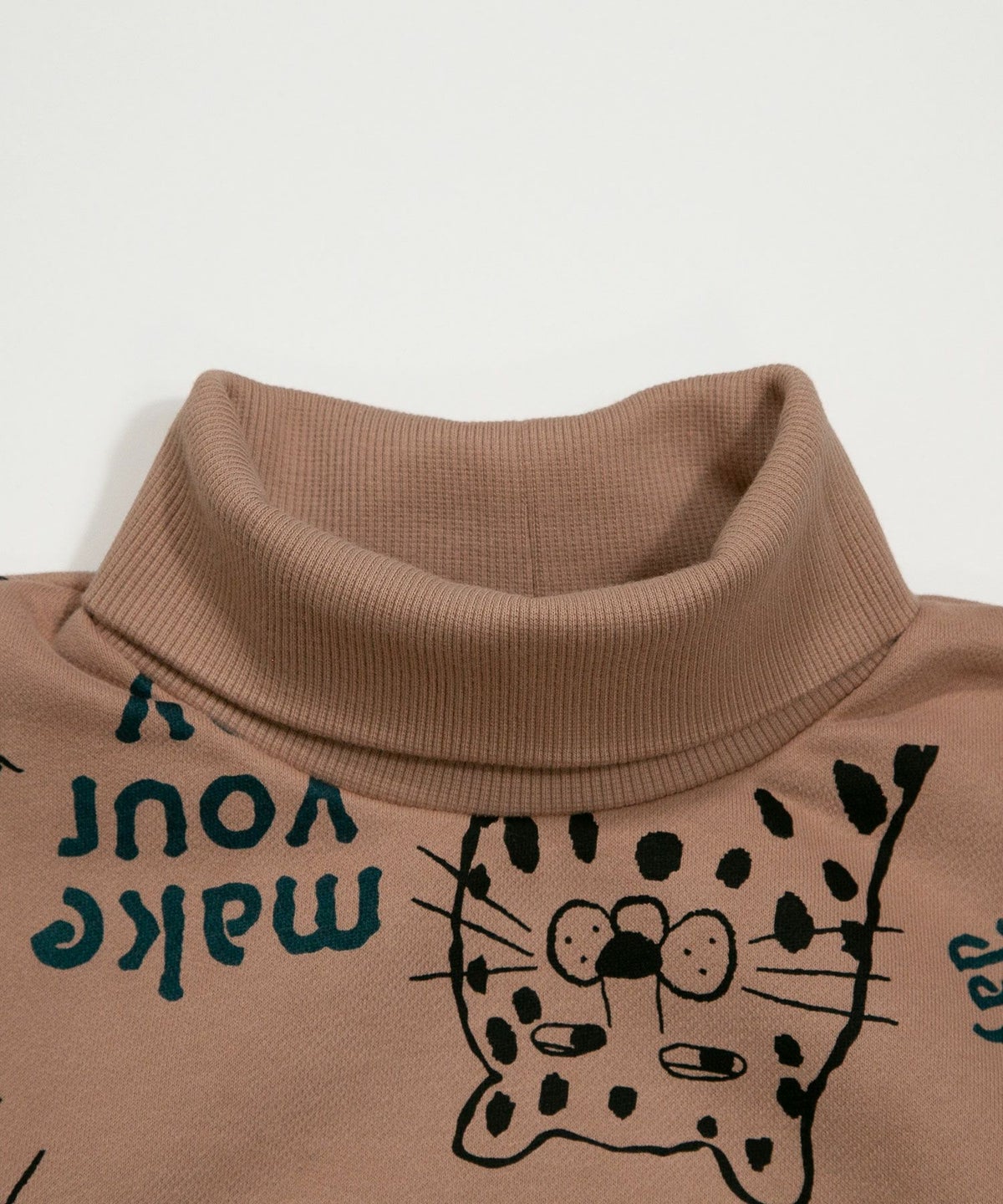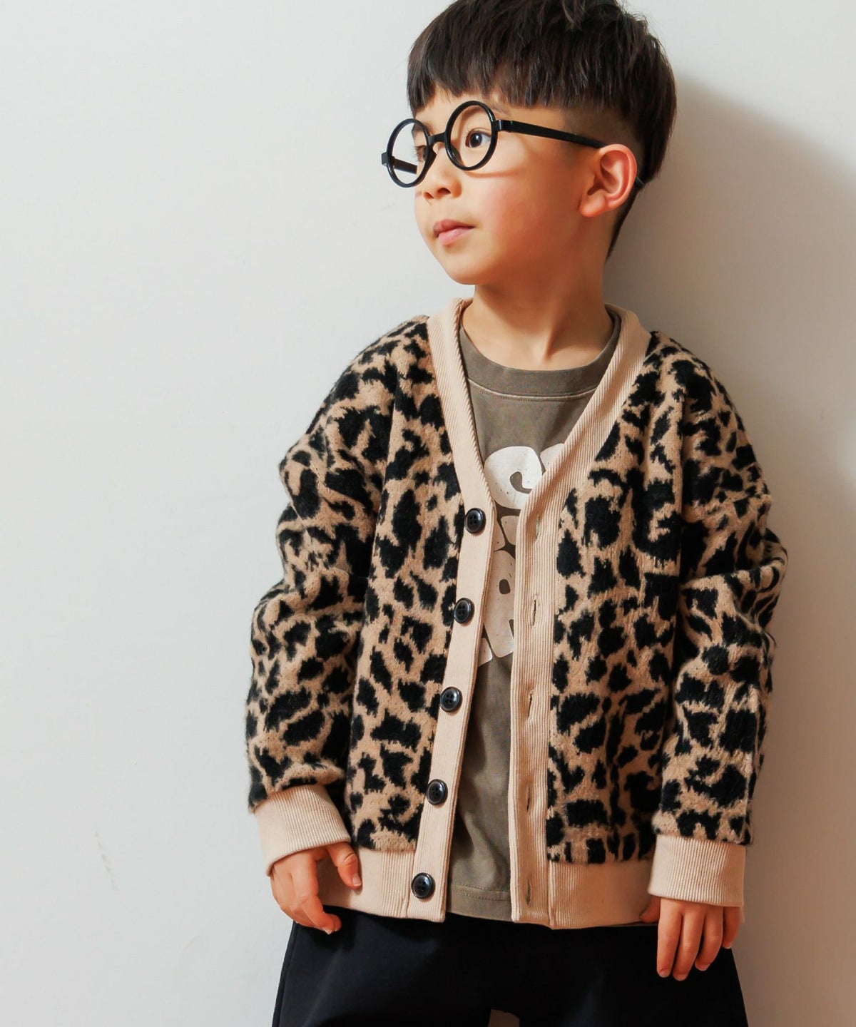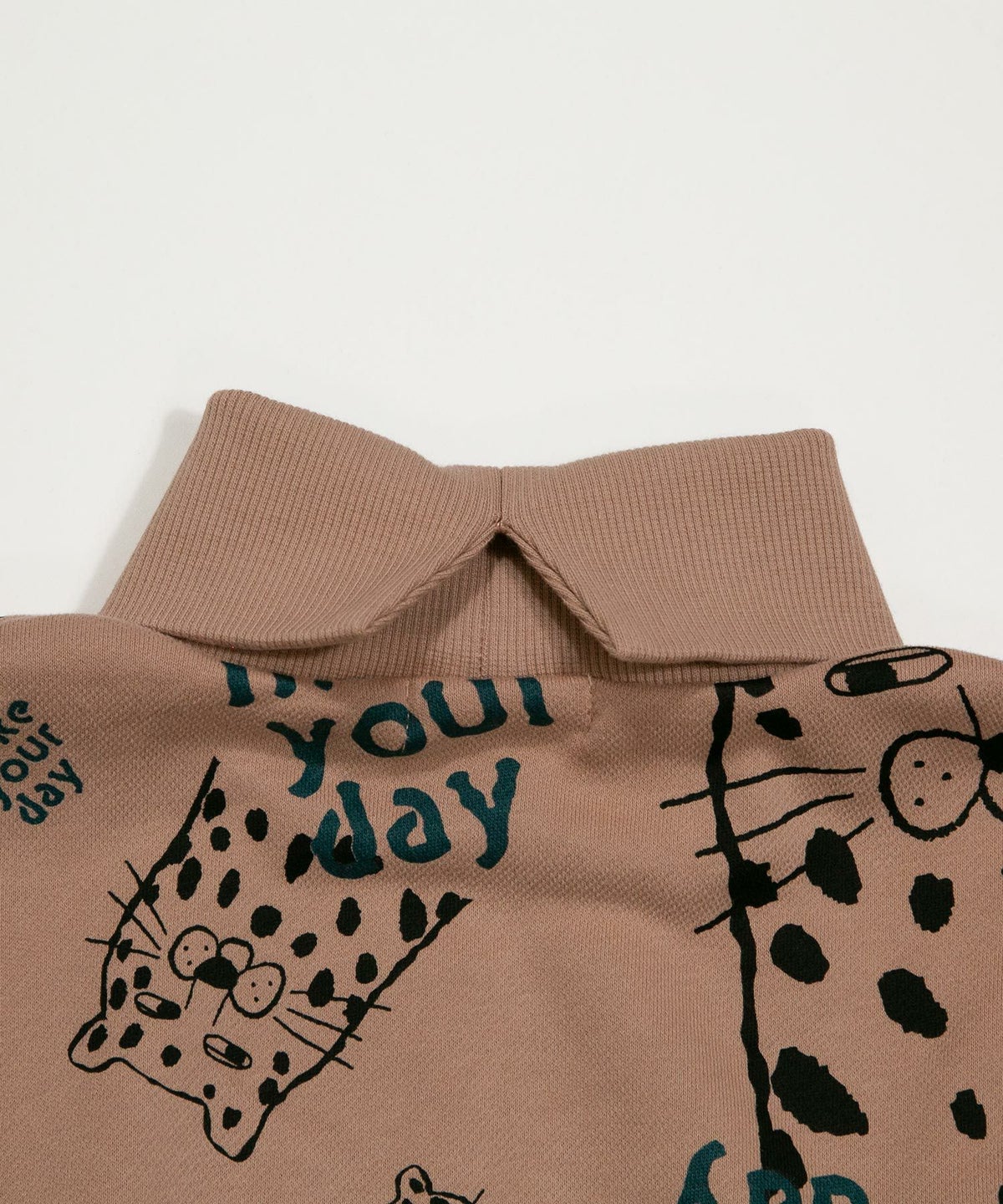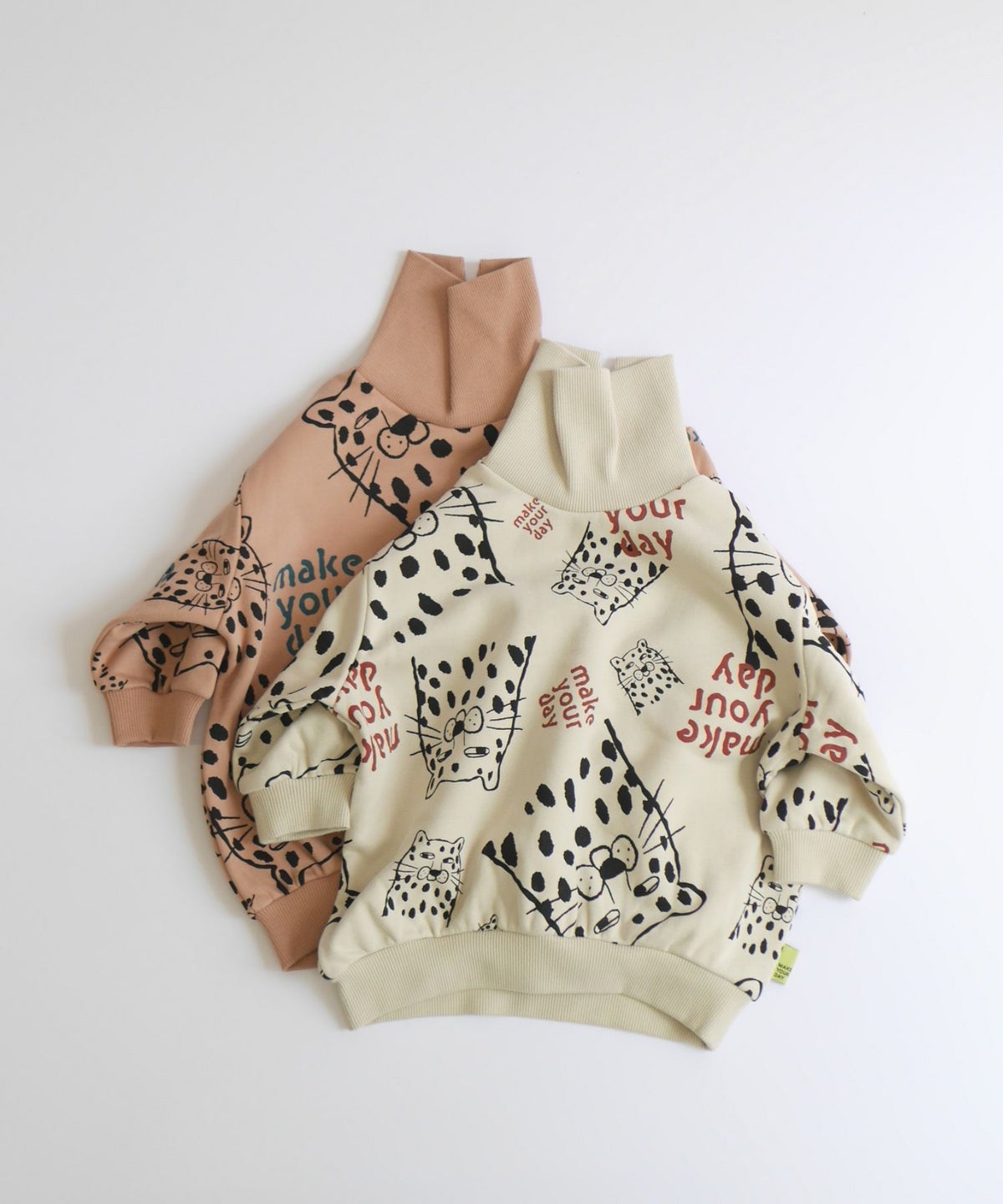 【セール】おとぼけヒョウ裏起毛総柄トレーナー■80~140cm