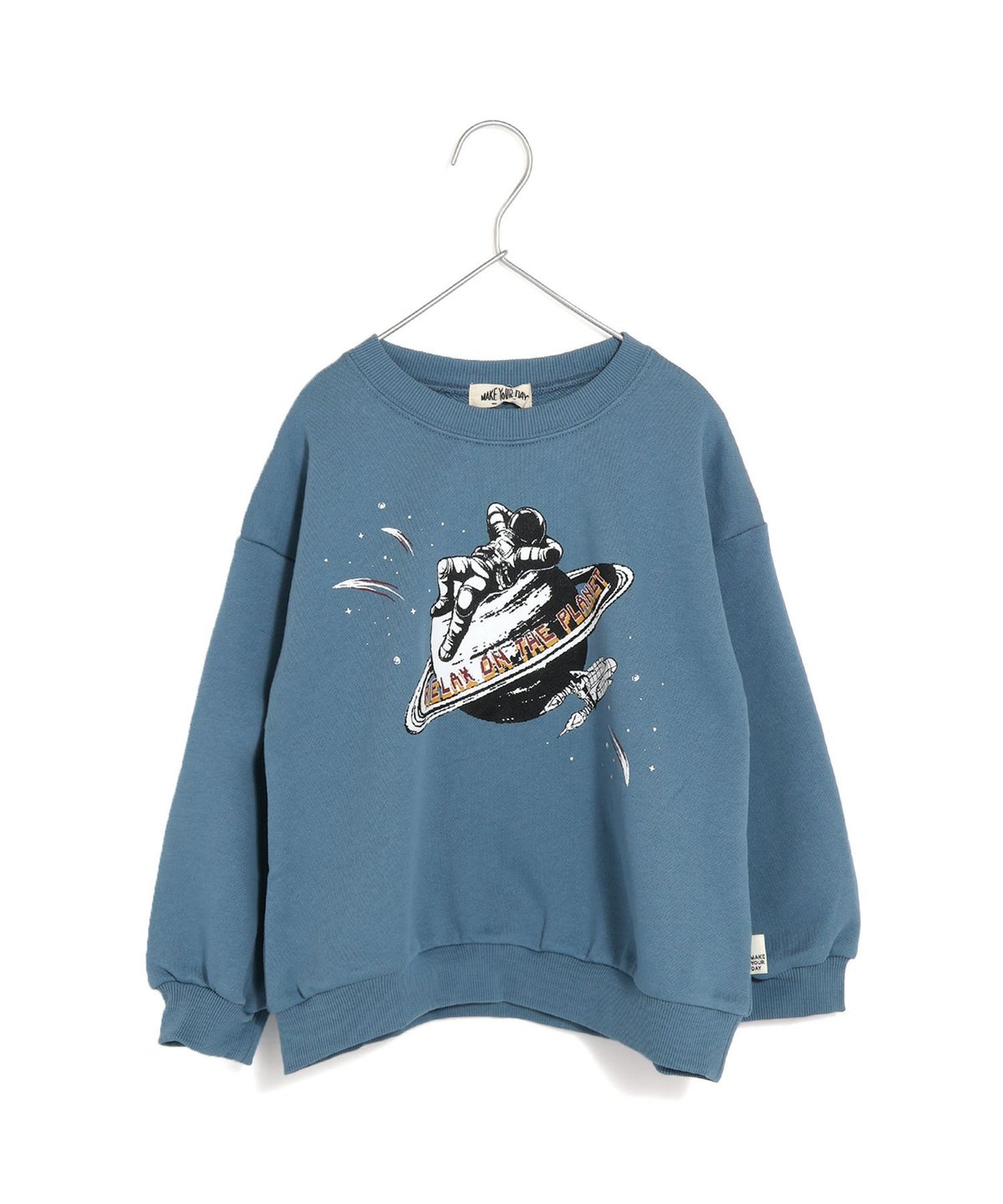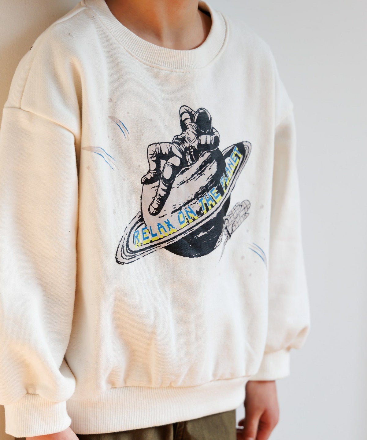 【セール】宇宙でひと休みプリント裏毛トレーナー■80~140cm
