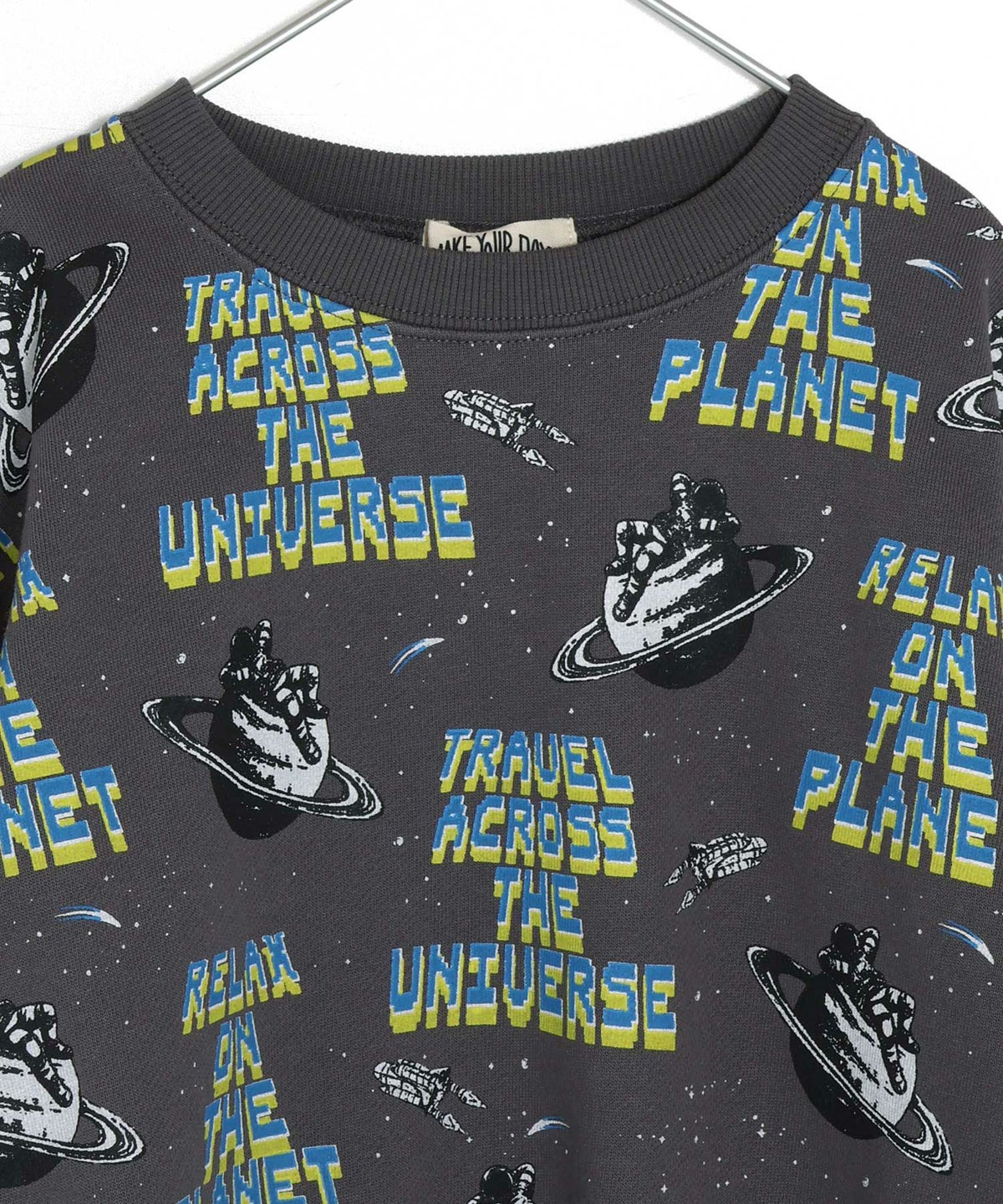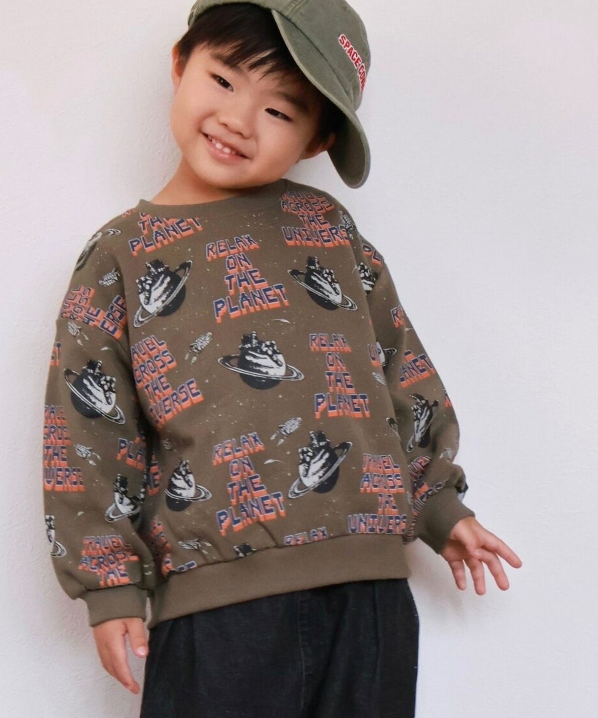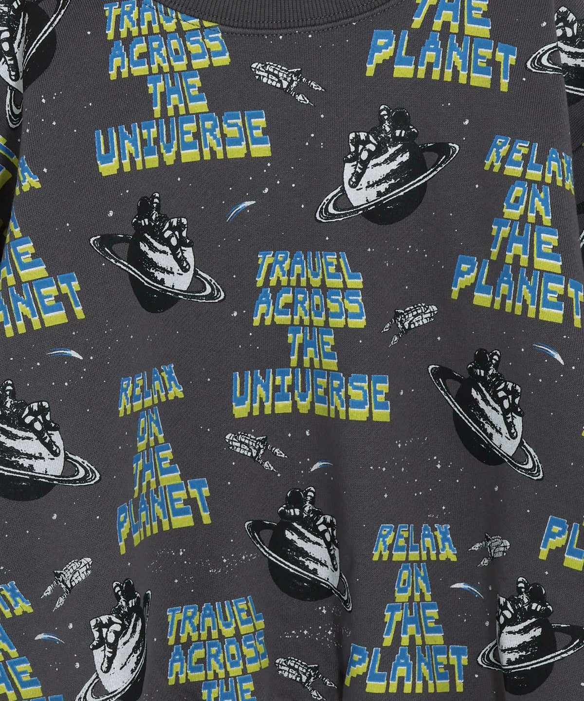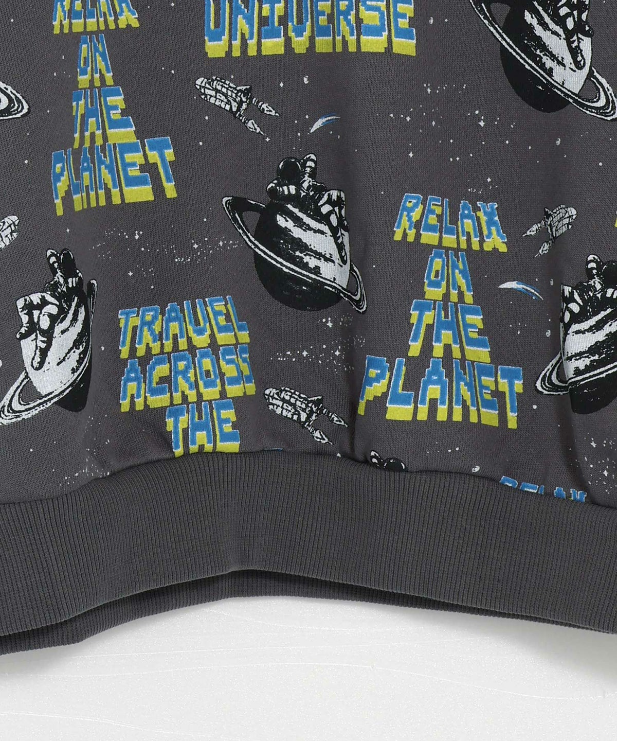 【セール】宇宙でひと休み総柄裏毛トレーナー■80~140cm