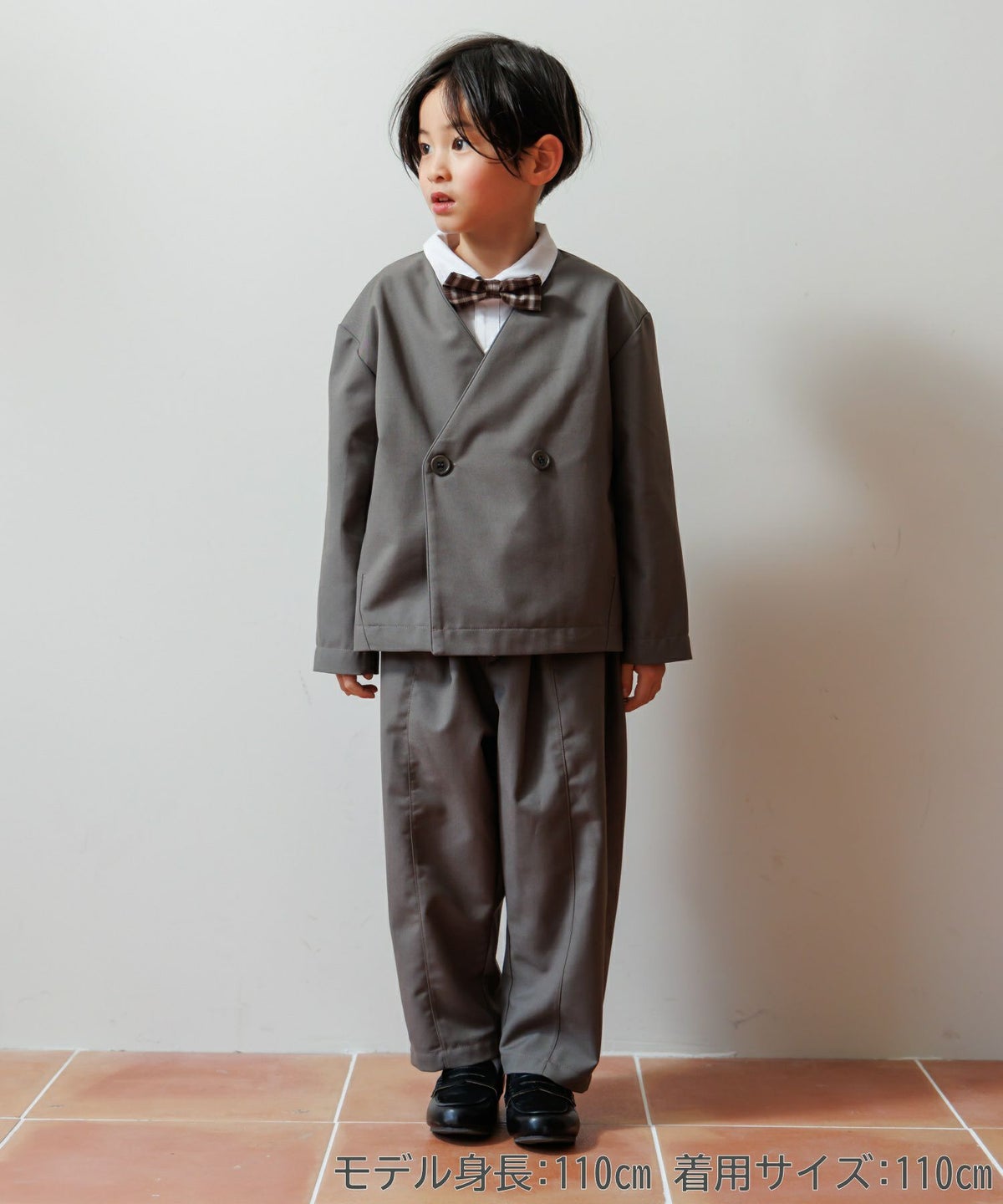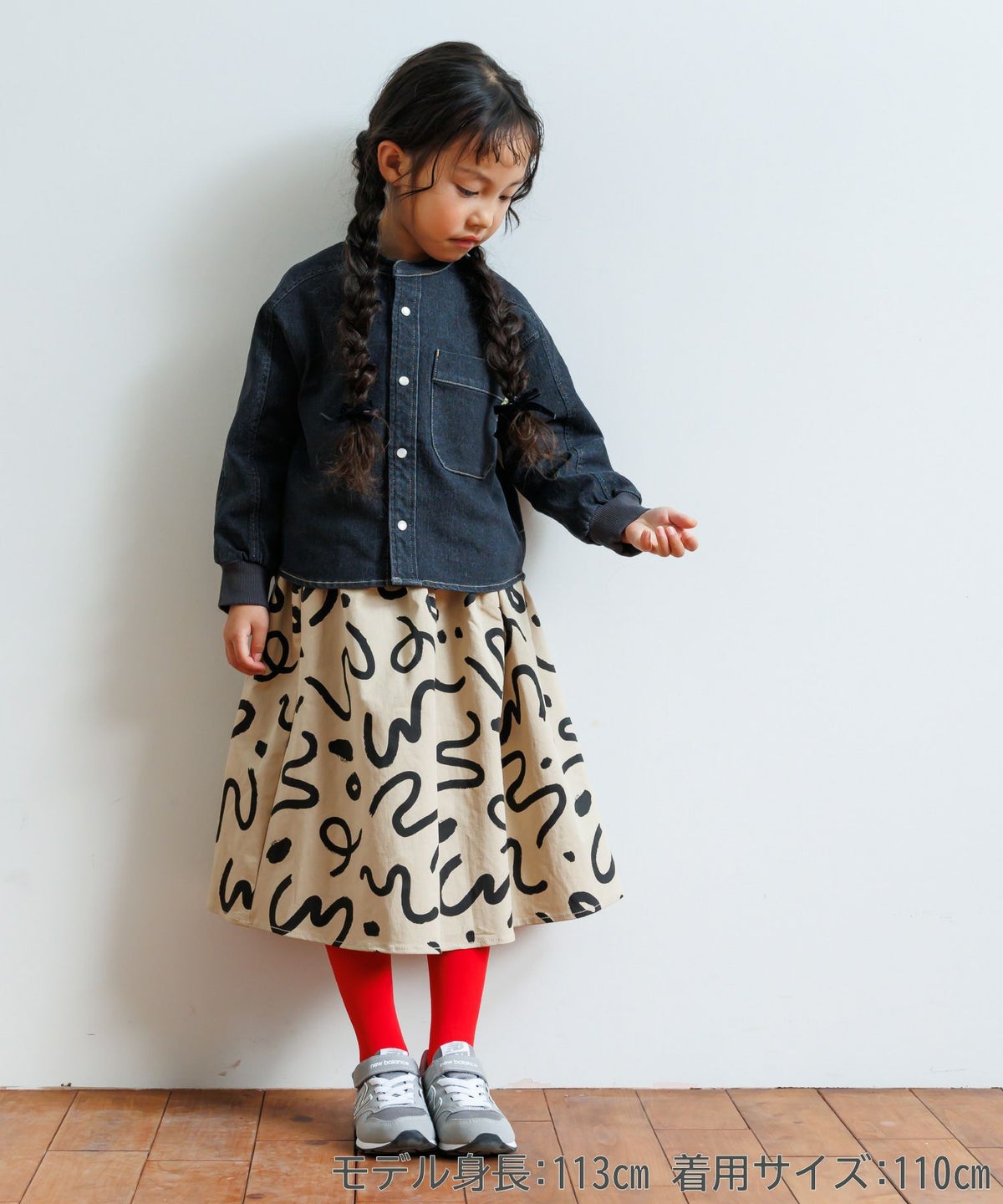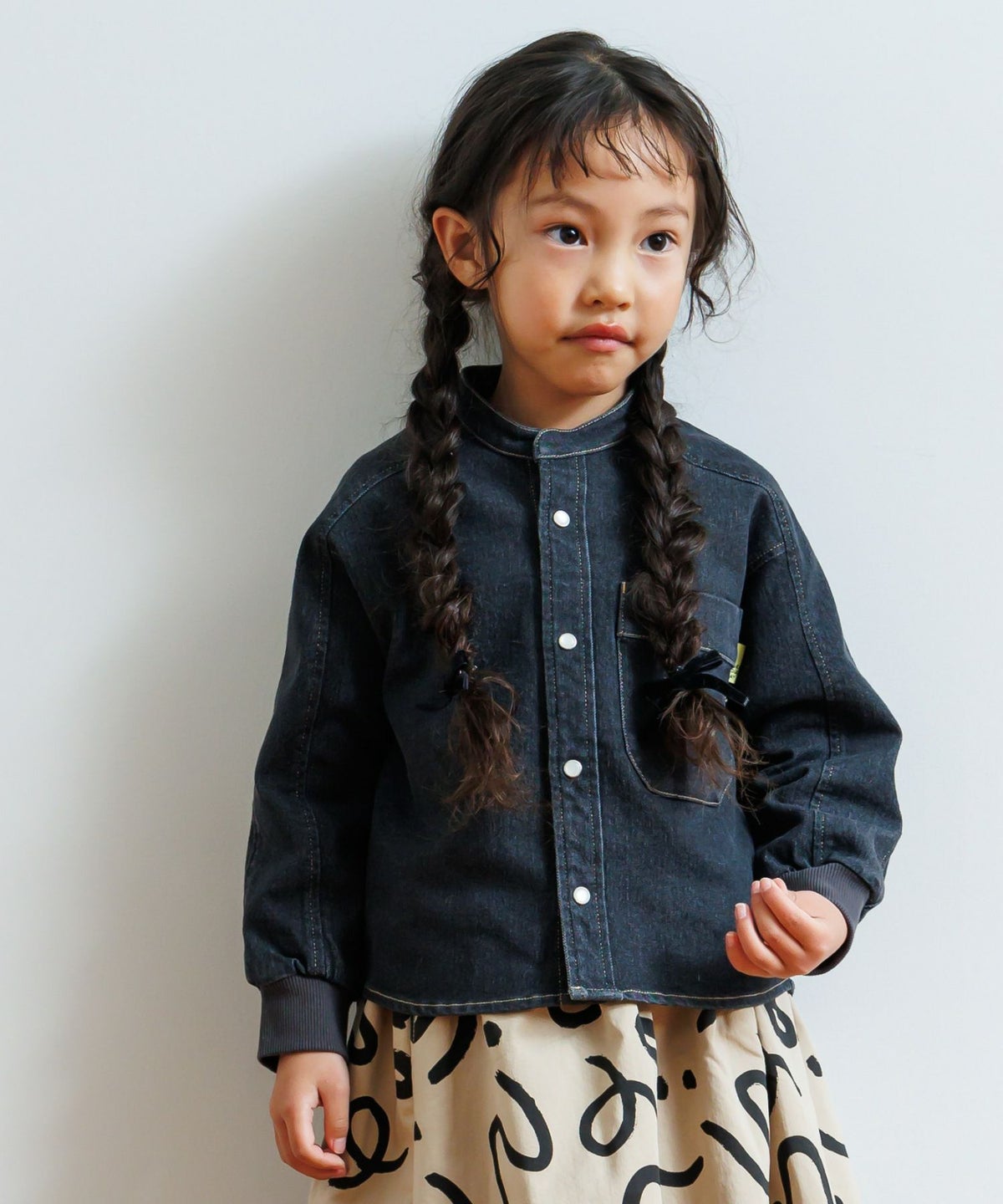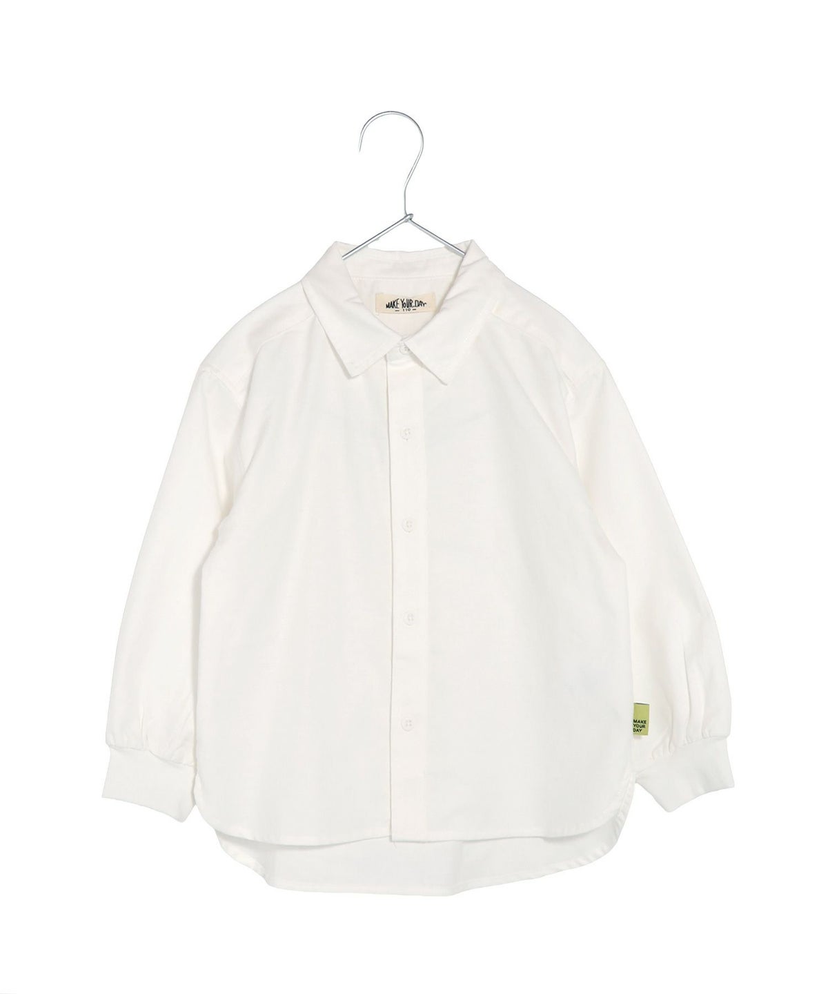 【セール】無地バンドカラー長袖シャツ■80~140cm