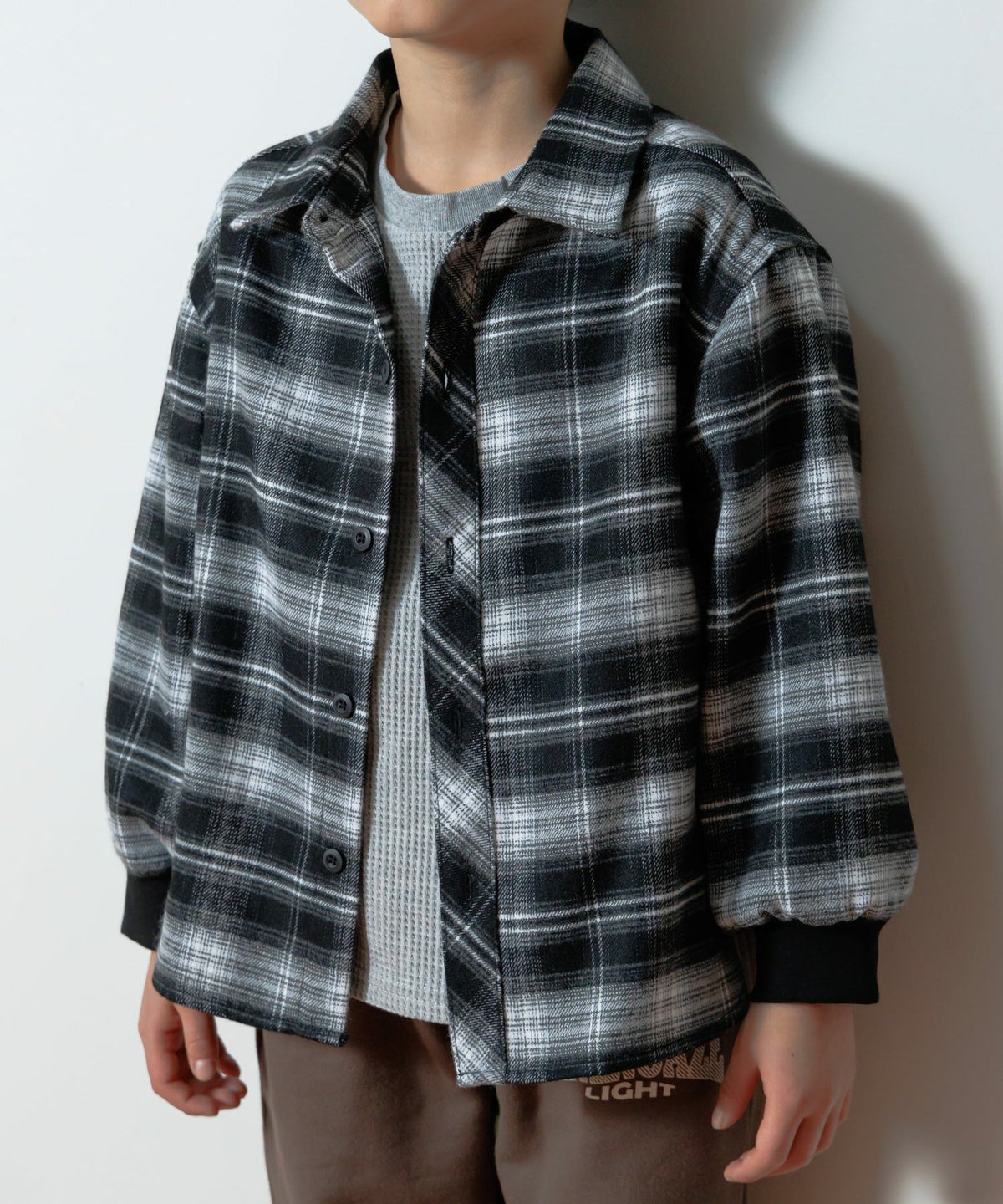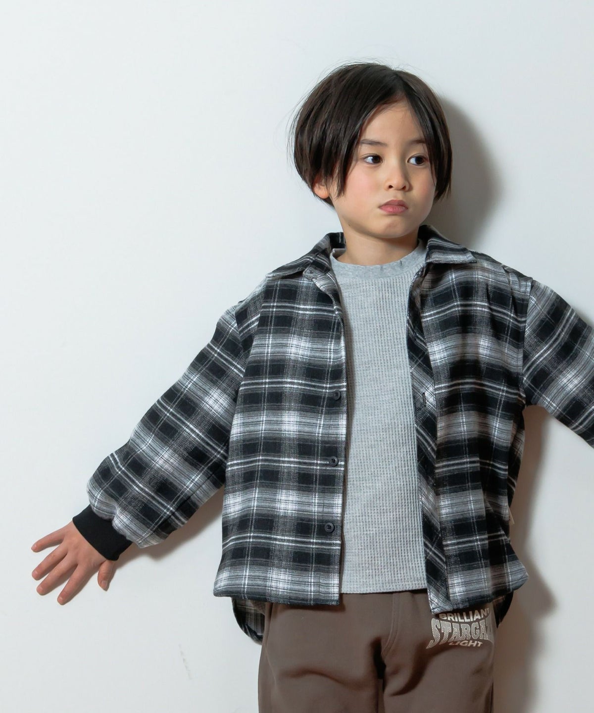 【セール】無地とチェックのスタンダード長袖シャツ■80~140cm