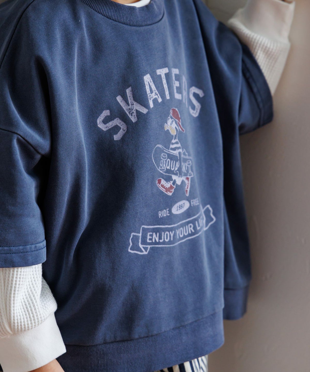 【セール】製品染めミニ裏毛7分袖Tシャツ■80~140cm