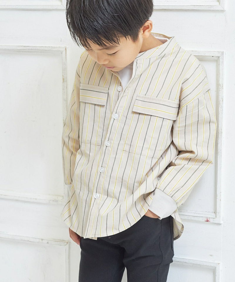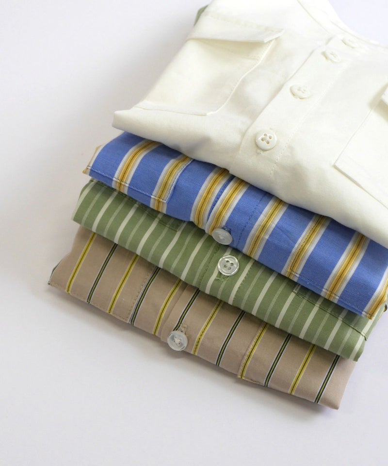 トレンドのバンドカラーで、シンプルでおしゃれなストライプ柄3色とフォーマルにも使える無地のオフホワイトの4色展開です◎