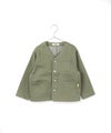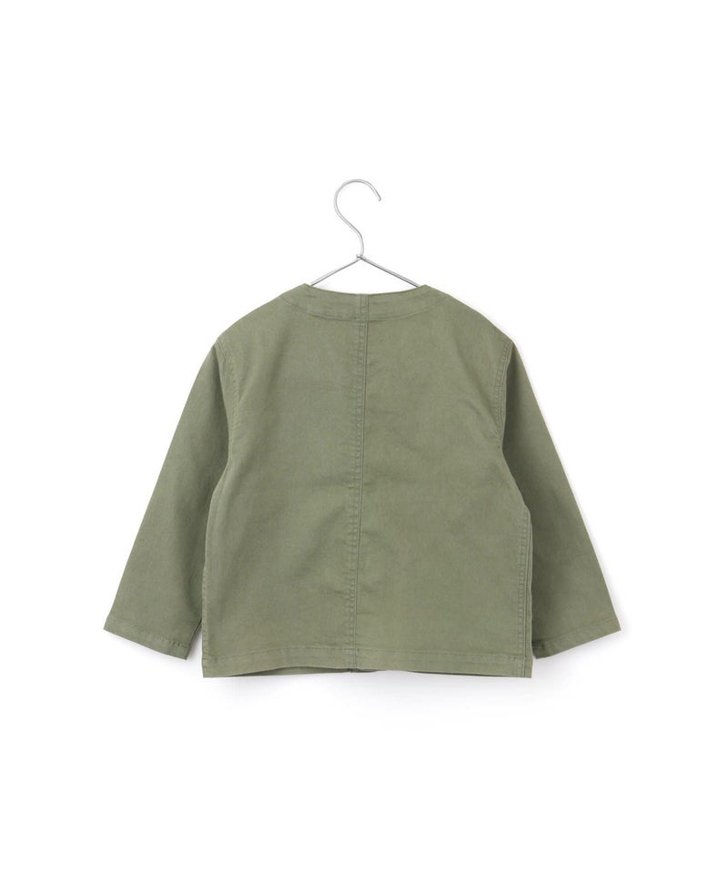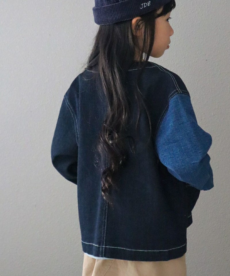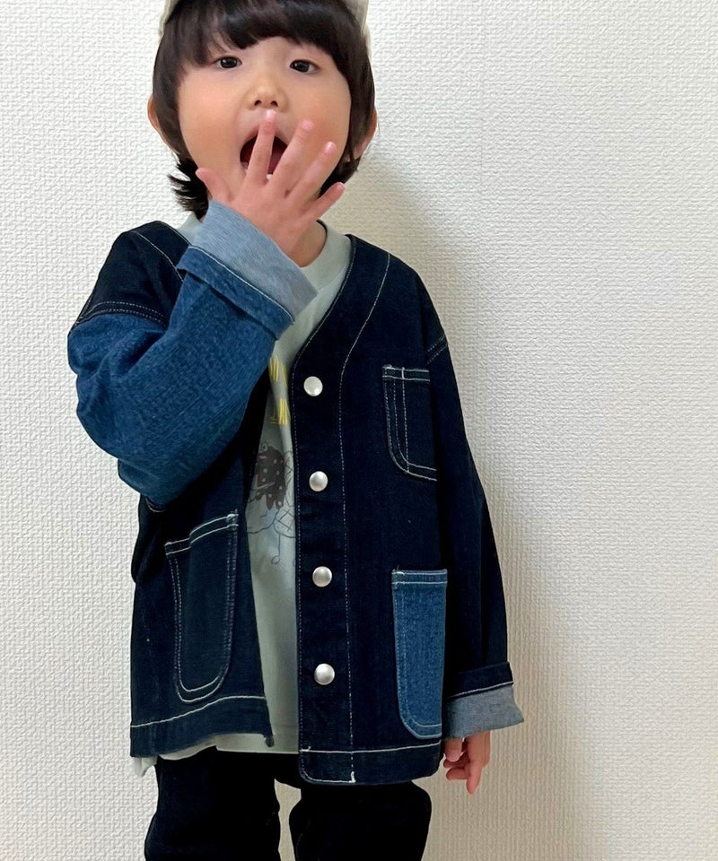 ストレッチの効いたデニムを使用したノーカラーのカバーオールジャケット。