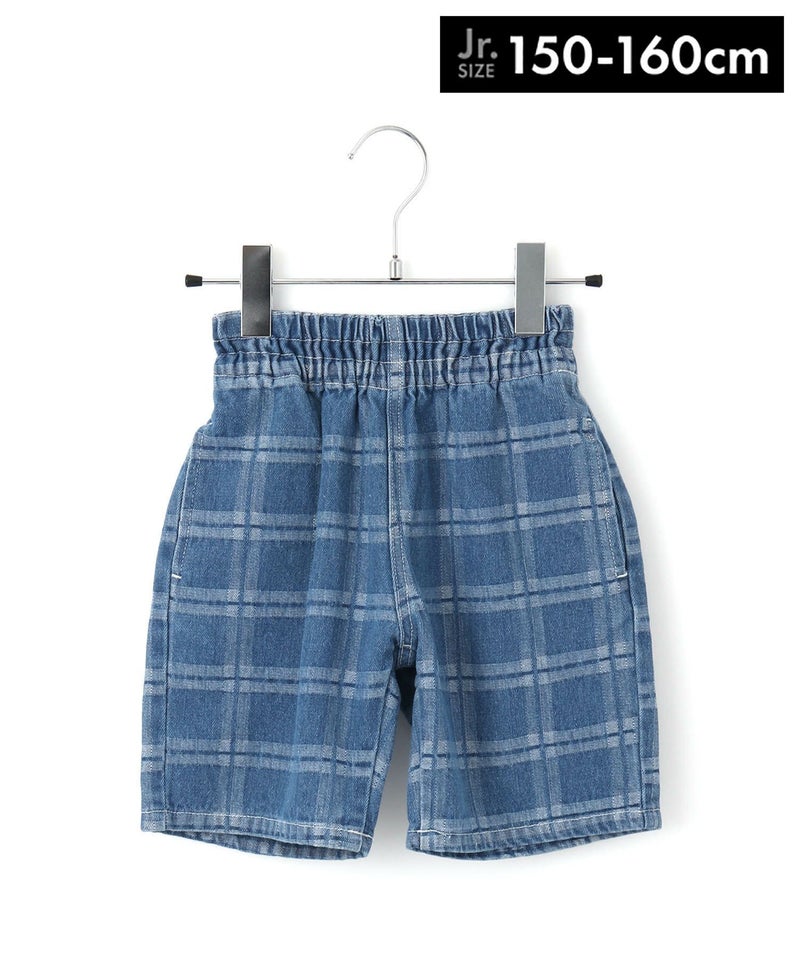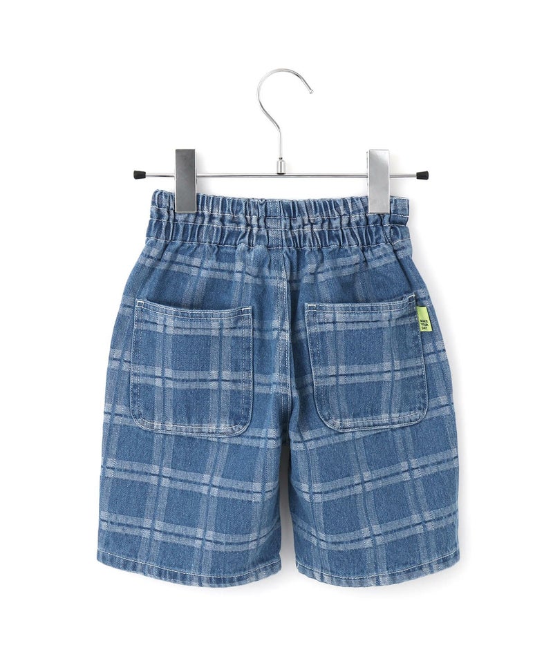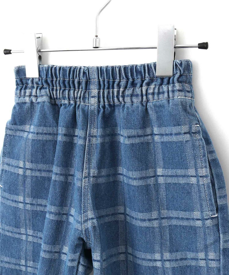 デニムの織り模様でチェック柄が浮かび上がるブルー