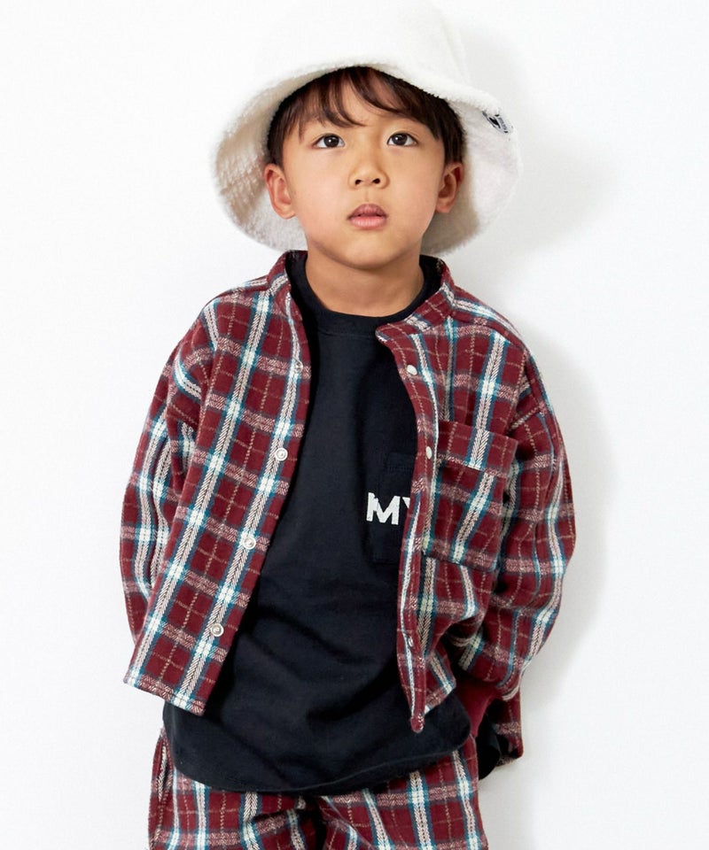 【セール】セットアップできるチェックバンドカラーシャツ■90~140cm