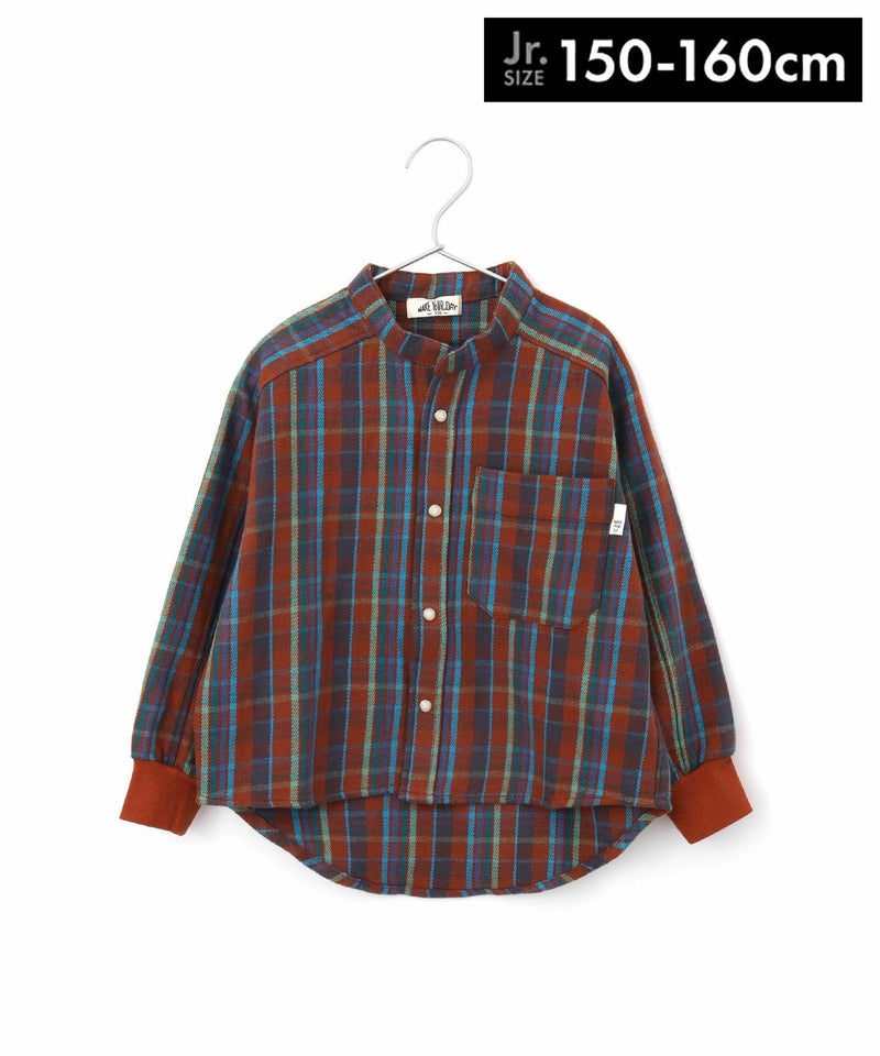 【セール】セットアップできるチェックバンドカラーシャツ■150.160cm