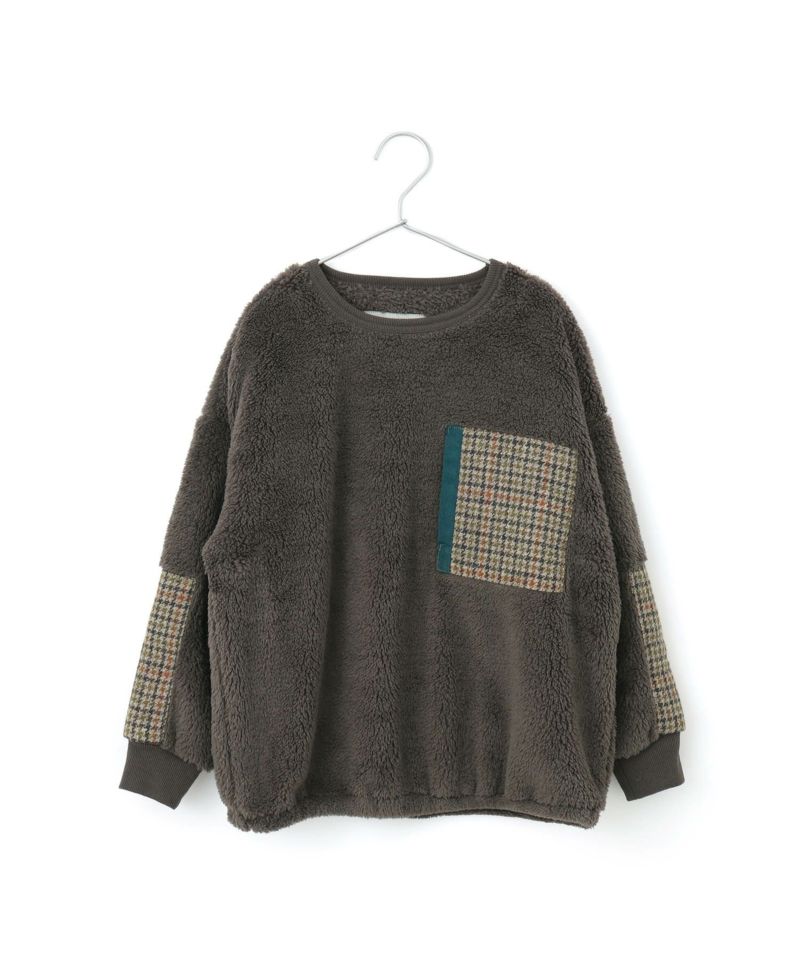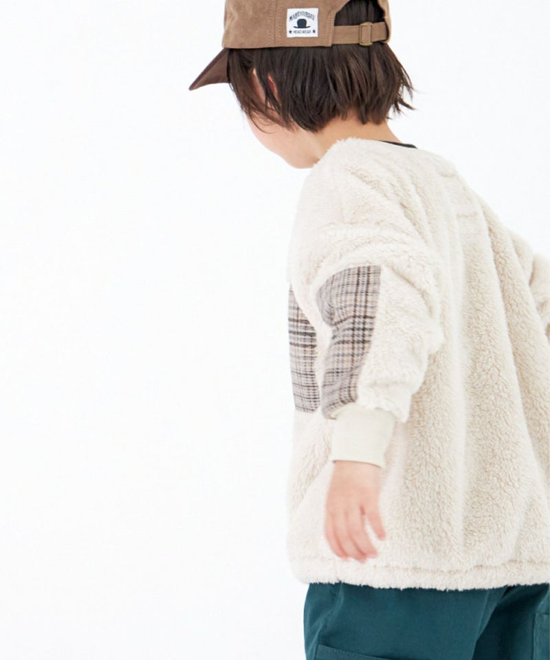 【セール】チェックポケット両面ボアプルオーバー■80~140cm