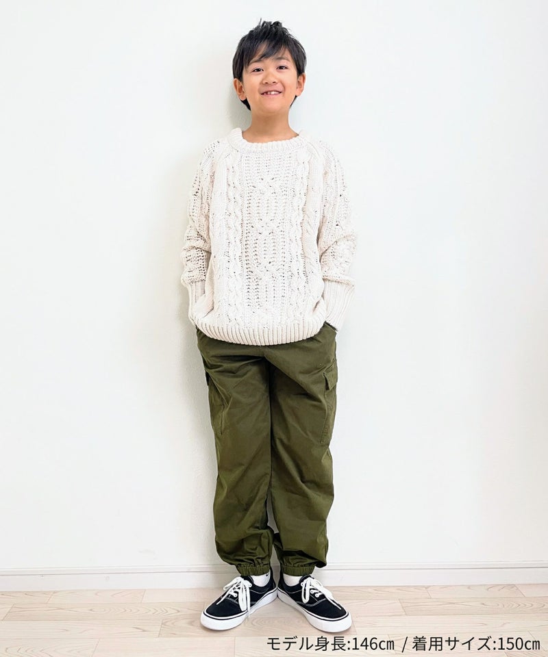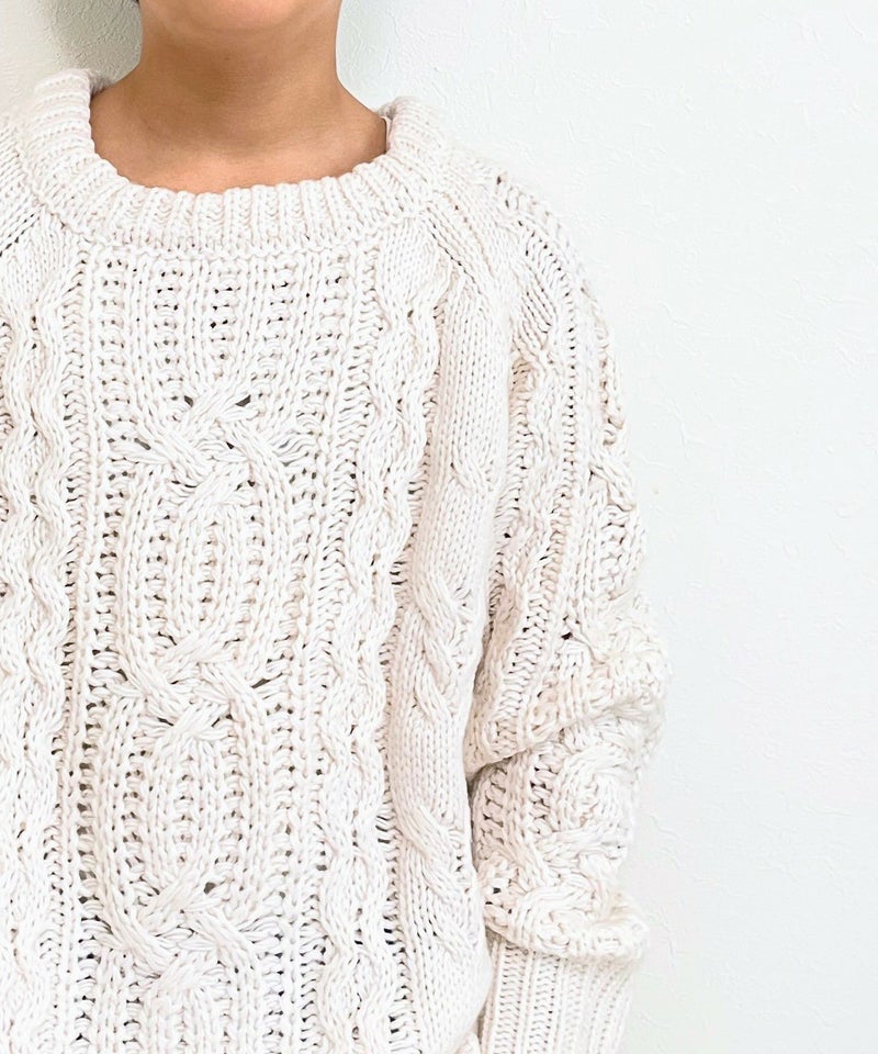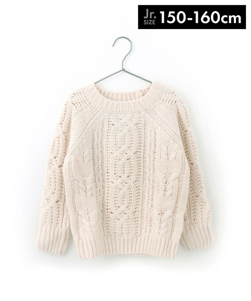 【セール】ざっくりケーブル編みラグランニット■150.160cm