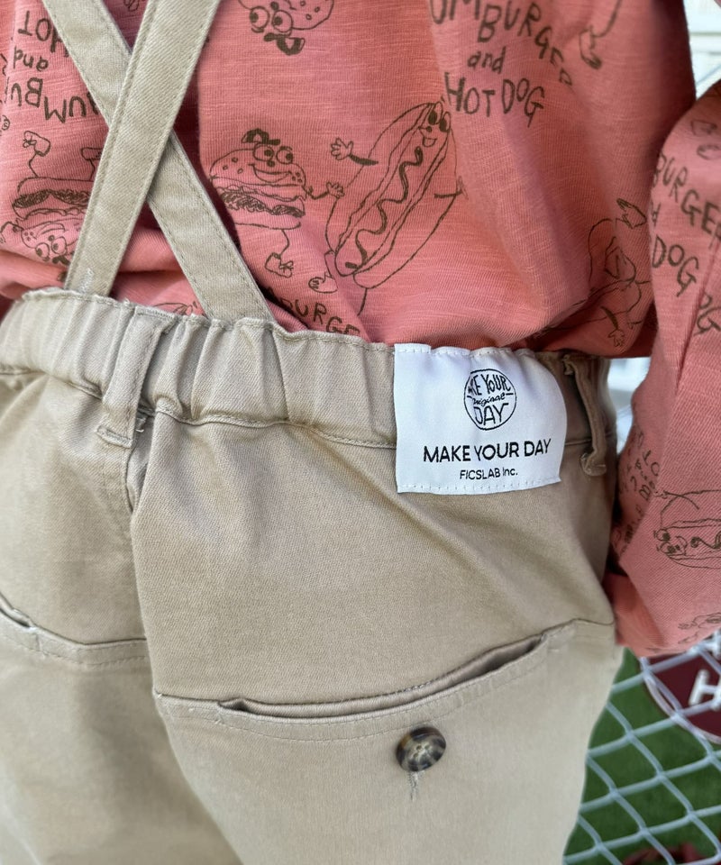 サスペンダーが付くとカジュアルな素材なのにキレイ目コーデになる不思議。