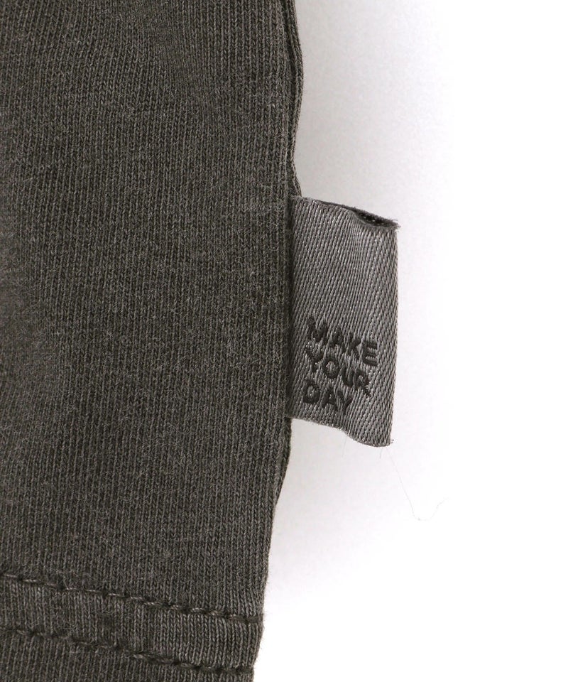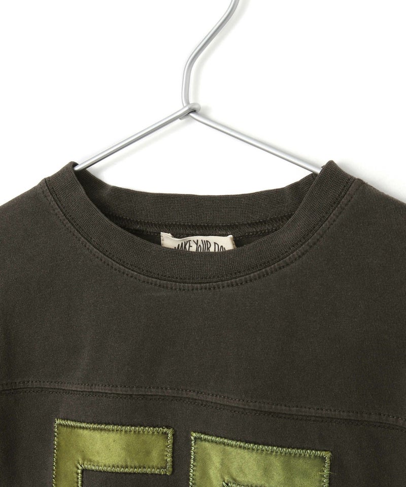 切替部分とアップリケ部分に程よい加工感が出ており、古着っぽくカジュアルな印象のTシャツ。