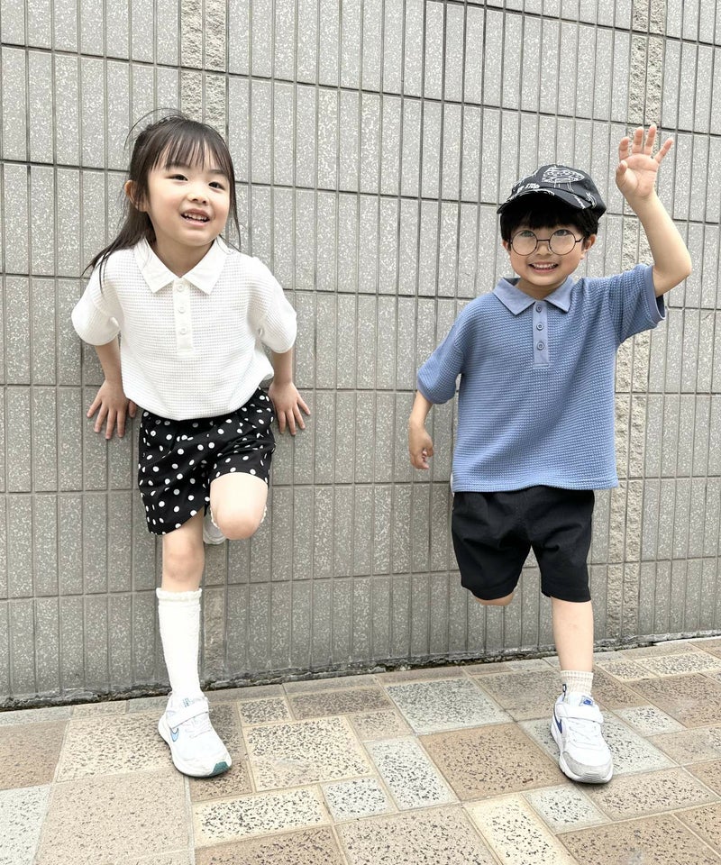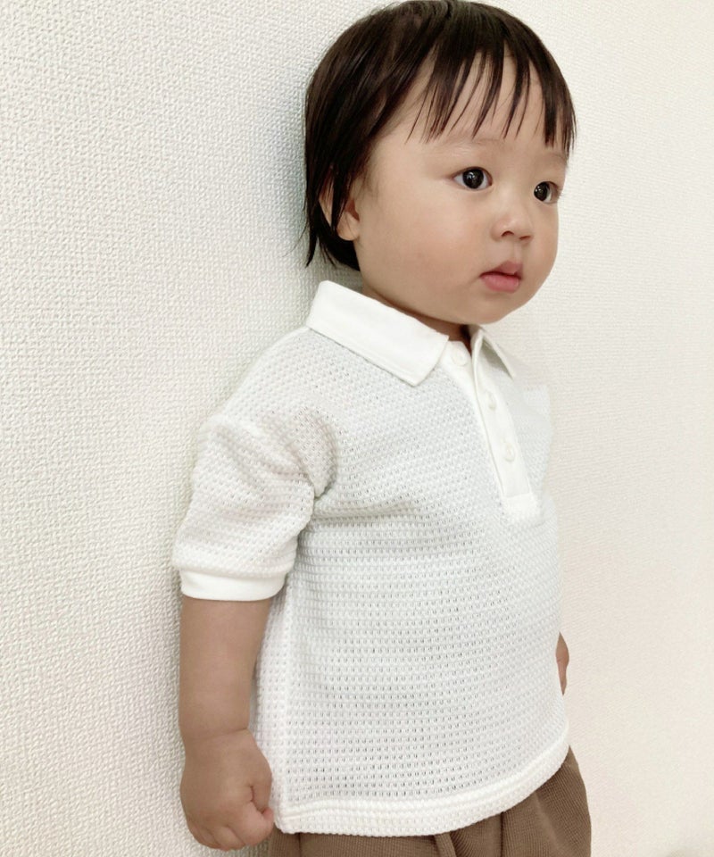 【セール】ワッフル半袖ポロシャツ■90~140cm
