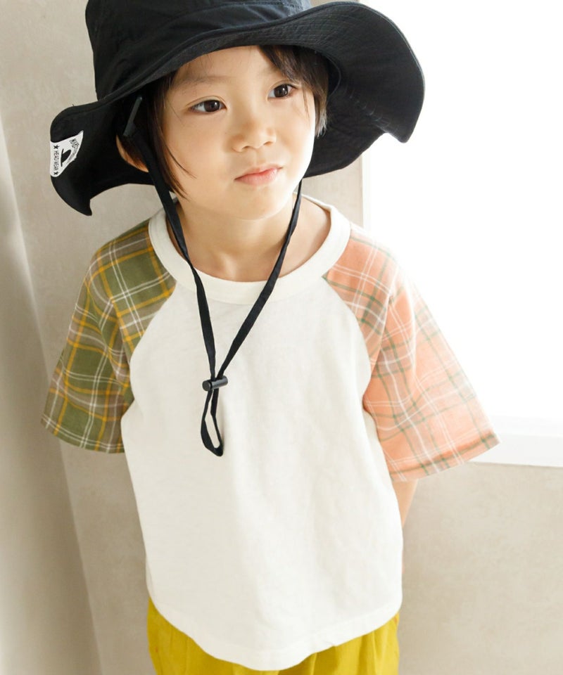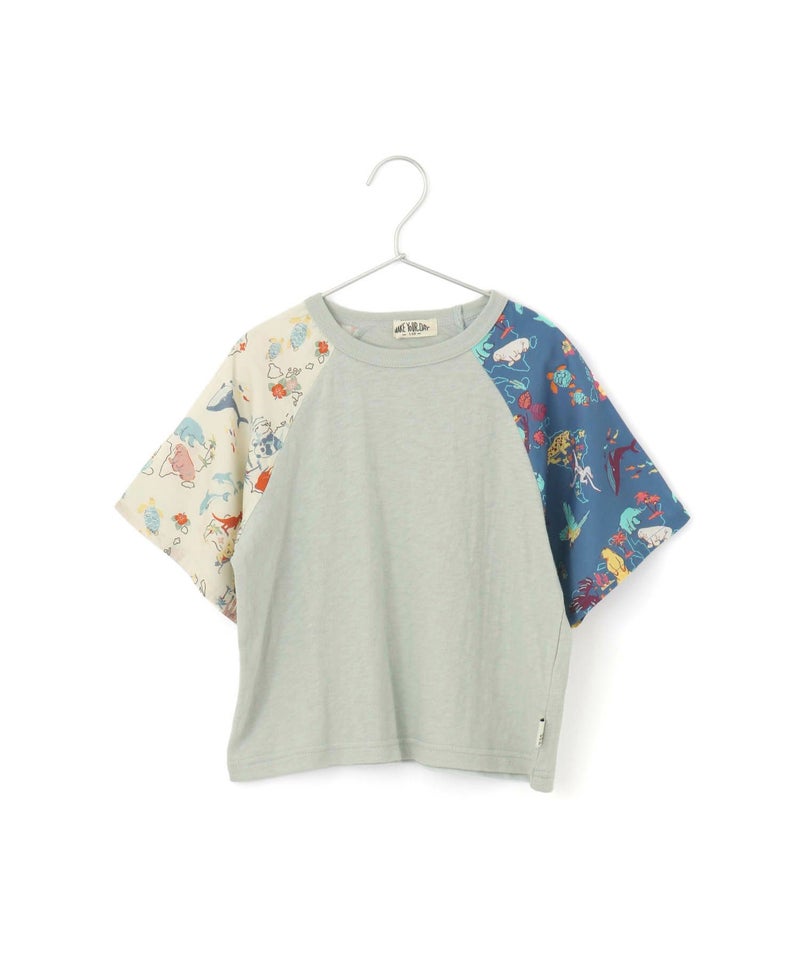 【セール】袖素材切替ラグラン半袖Tシャツ■90~140cm