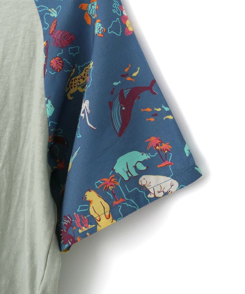ラグランのお袖を大胆に切り替えたTシャツ。