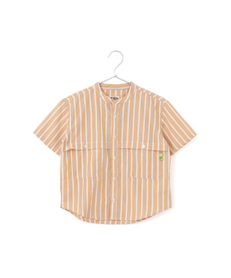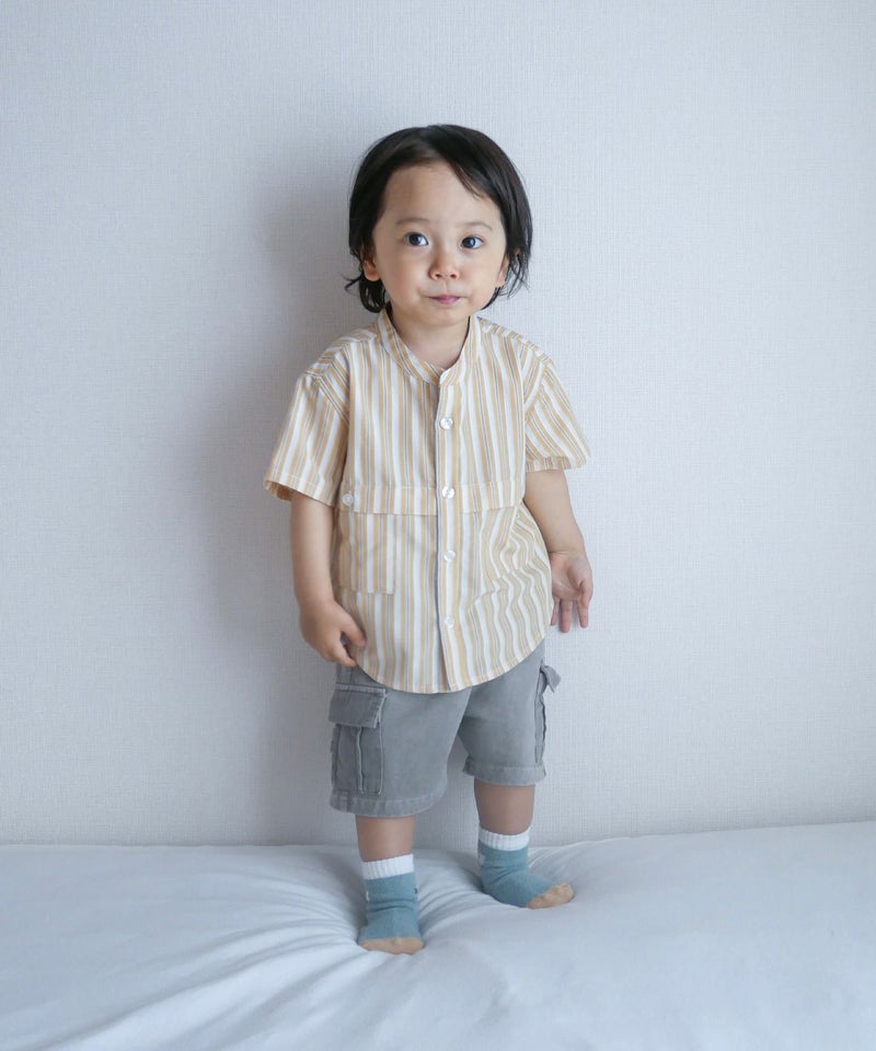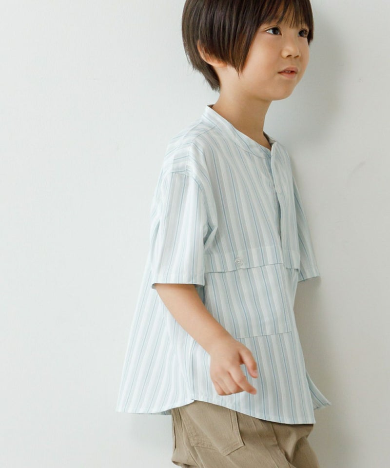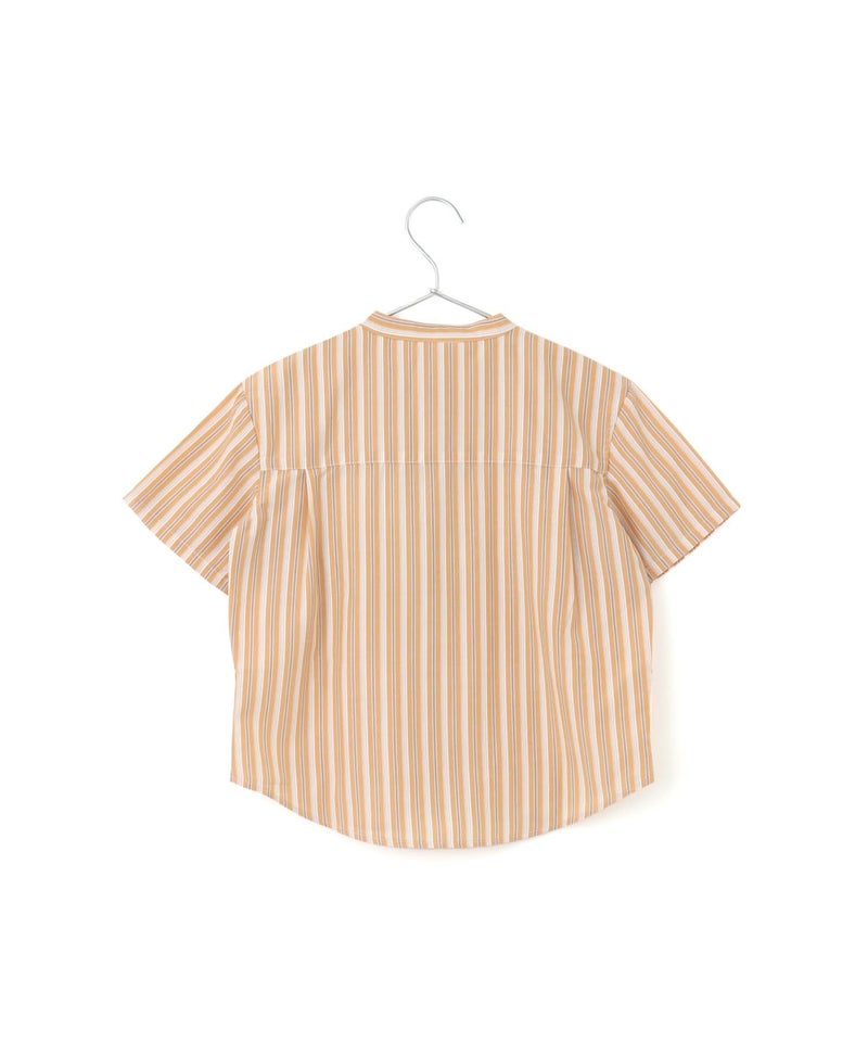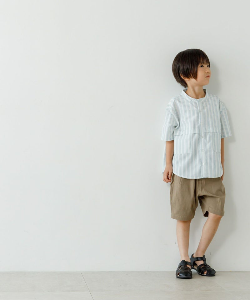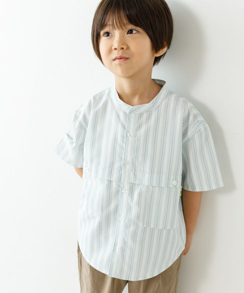 【セール】マルチストライプ半袖バンドカラーシャツ■90~140cm
