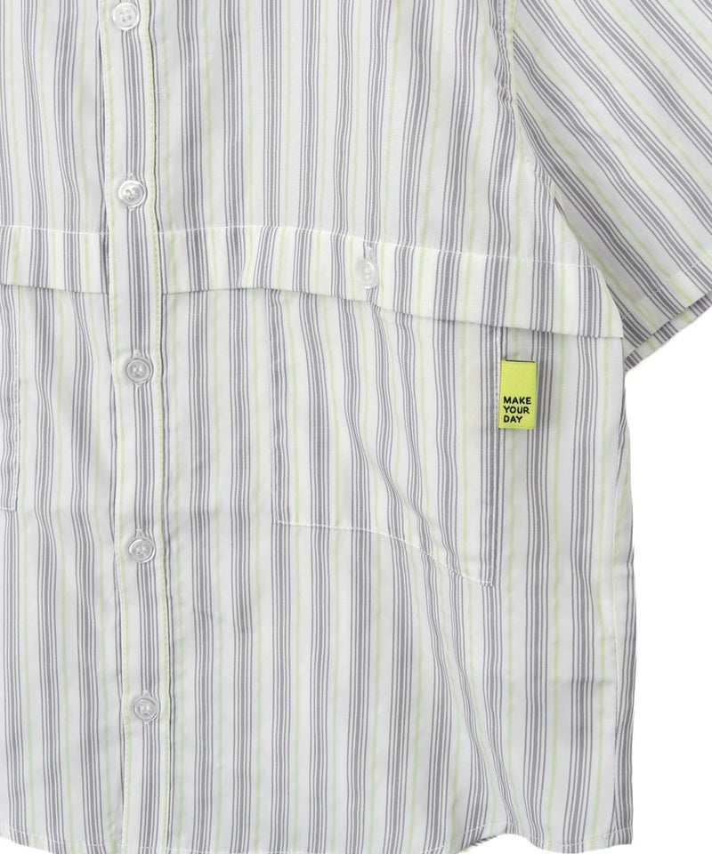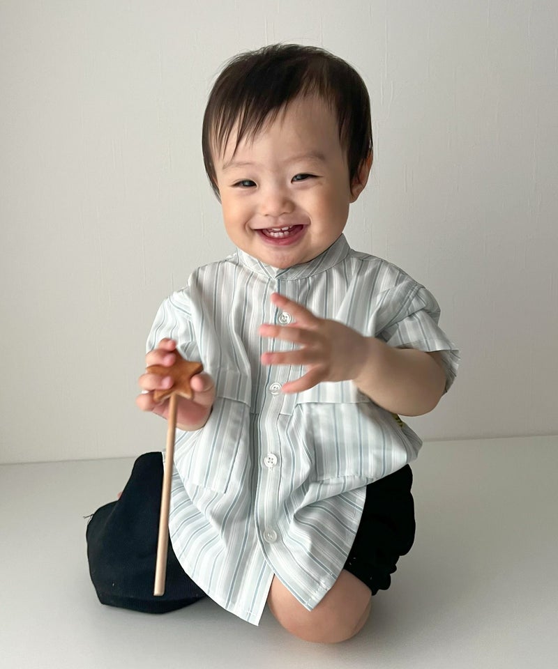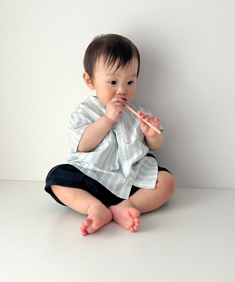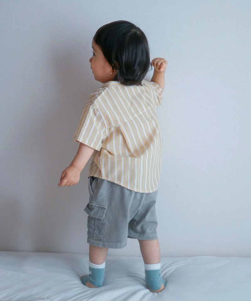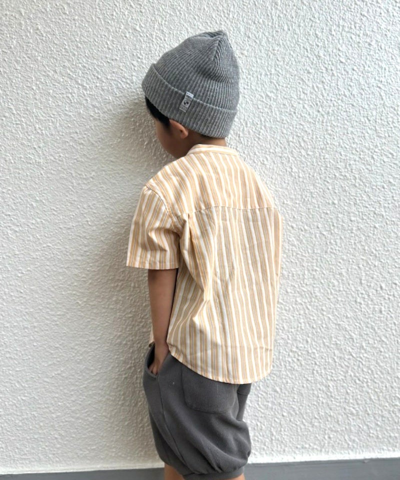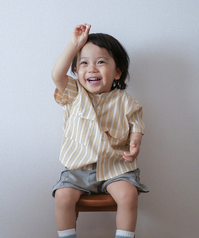 【セール】マルチストライプ半袖バンドカラーシャツ■90~140cm