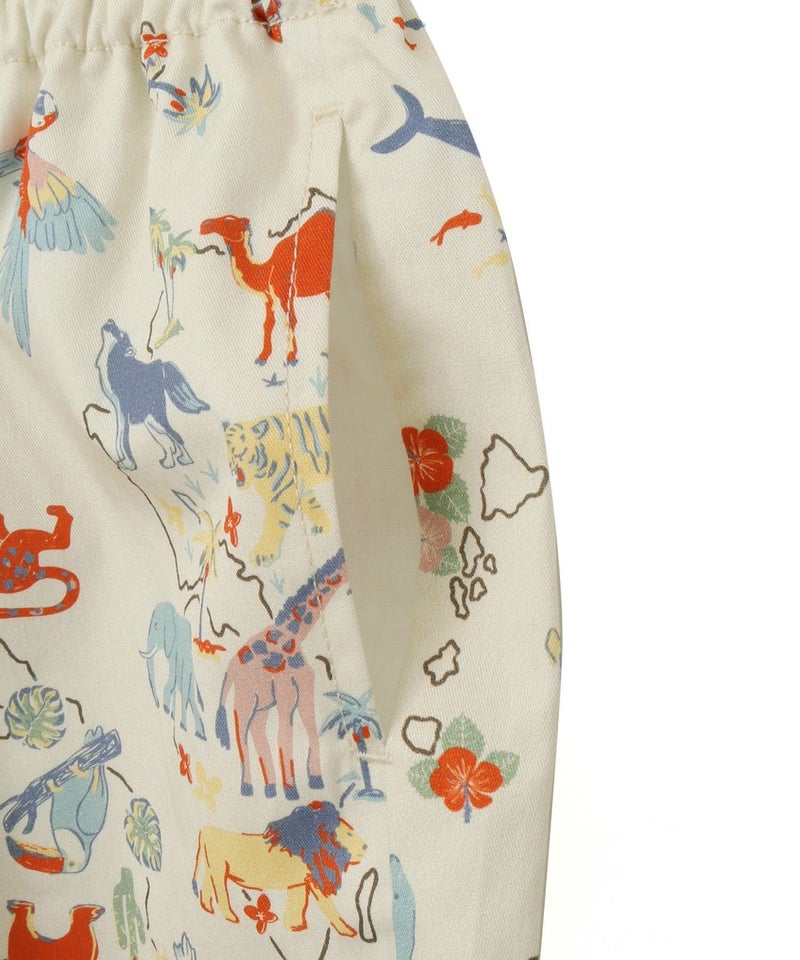いろんな動物たちが目立つ夏らしい明るい総柄です